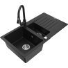 Mexen Matias granitdiskbänk 1,5-fack med avrinningsbräda och köksblandare Elia, svart/guld metallic - 6502-75-670101-70