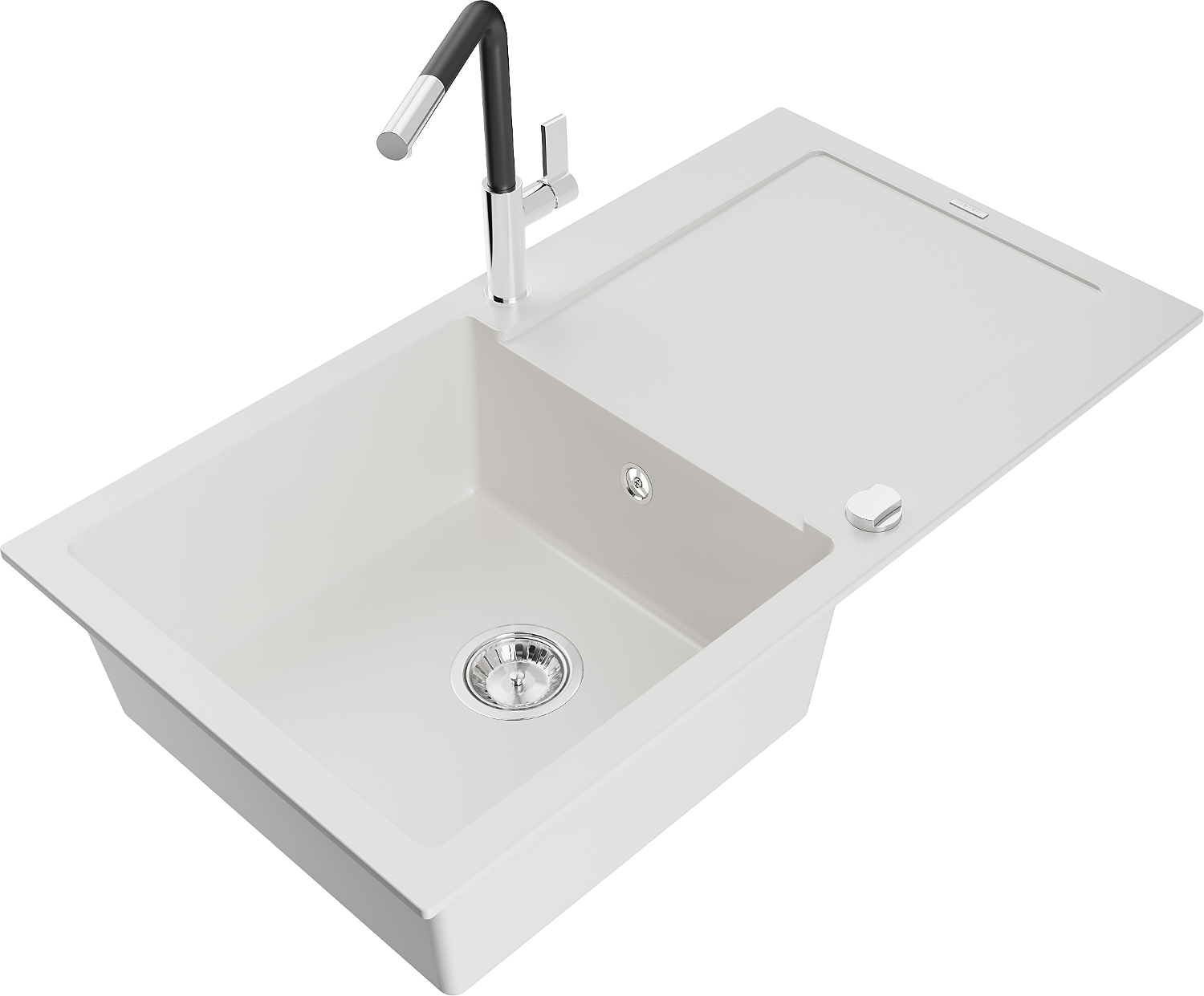 Mexen Leo granitdiskbänk med en ho och avrinningsyta och köksblandare Flora, vit - 6501-20-670401-07