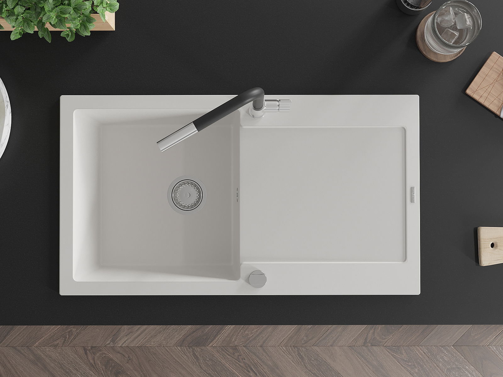 En väl skyddad yta på diskbänken förhindrar att smuts tränger in i dess inre strukturer. Tack vare detta är det ännu enklare att hålla diskbänken ren, och dess yta behåller sin estetik längre.