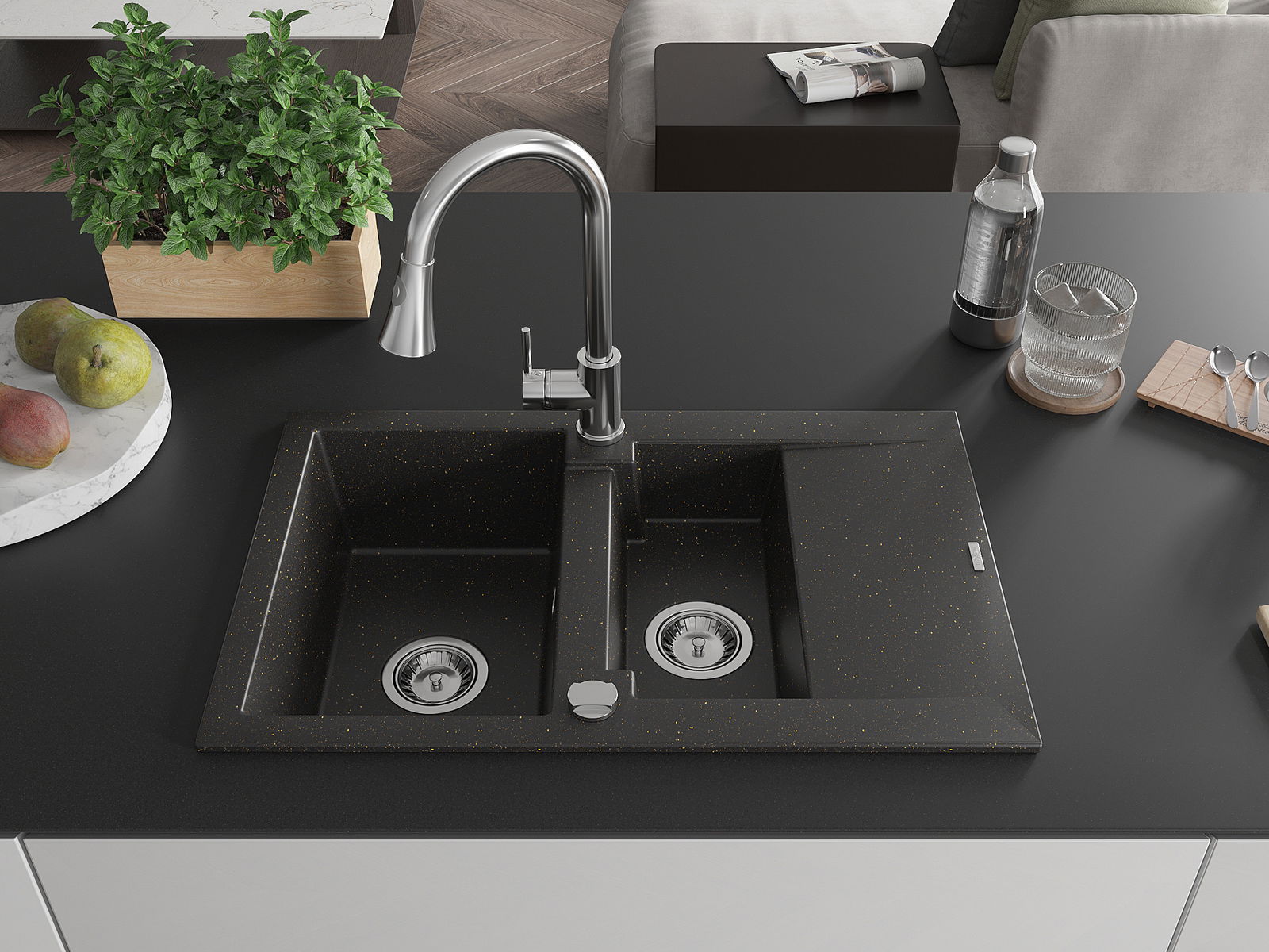 En väl skyddad yta på diskbänken förhindrar att smuts tränger in i dess inre strukturer. Tack vare detta är det ännu enklare att hålla diskbänken ren, och dess yta behåller sin estetik längre.