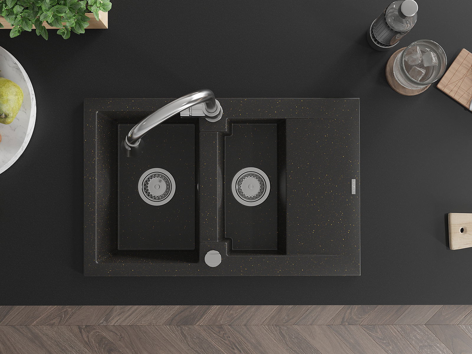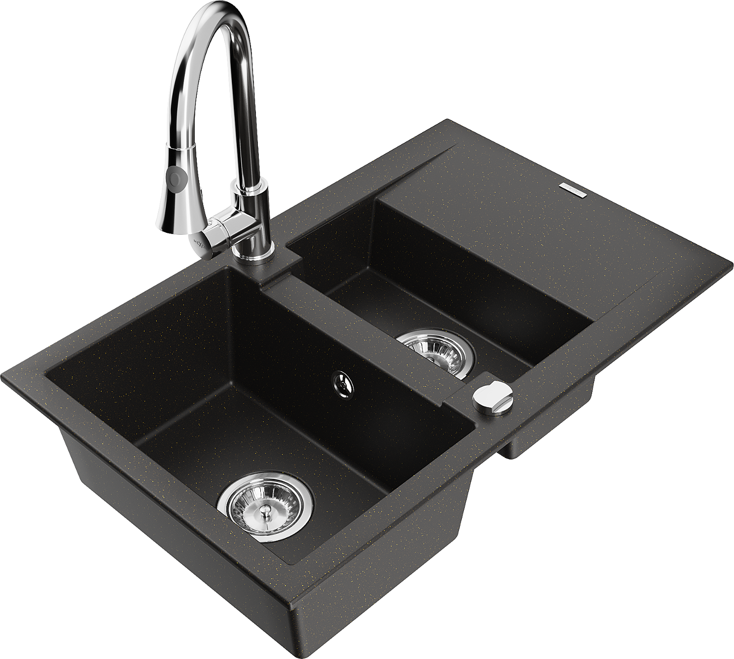Mexen Gaspar Granitdiskho 1,5-fack med avrinningsyta och köksblandare Elia, svart/guldig metallic - 6507-75-670101-00
