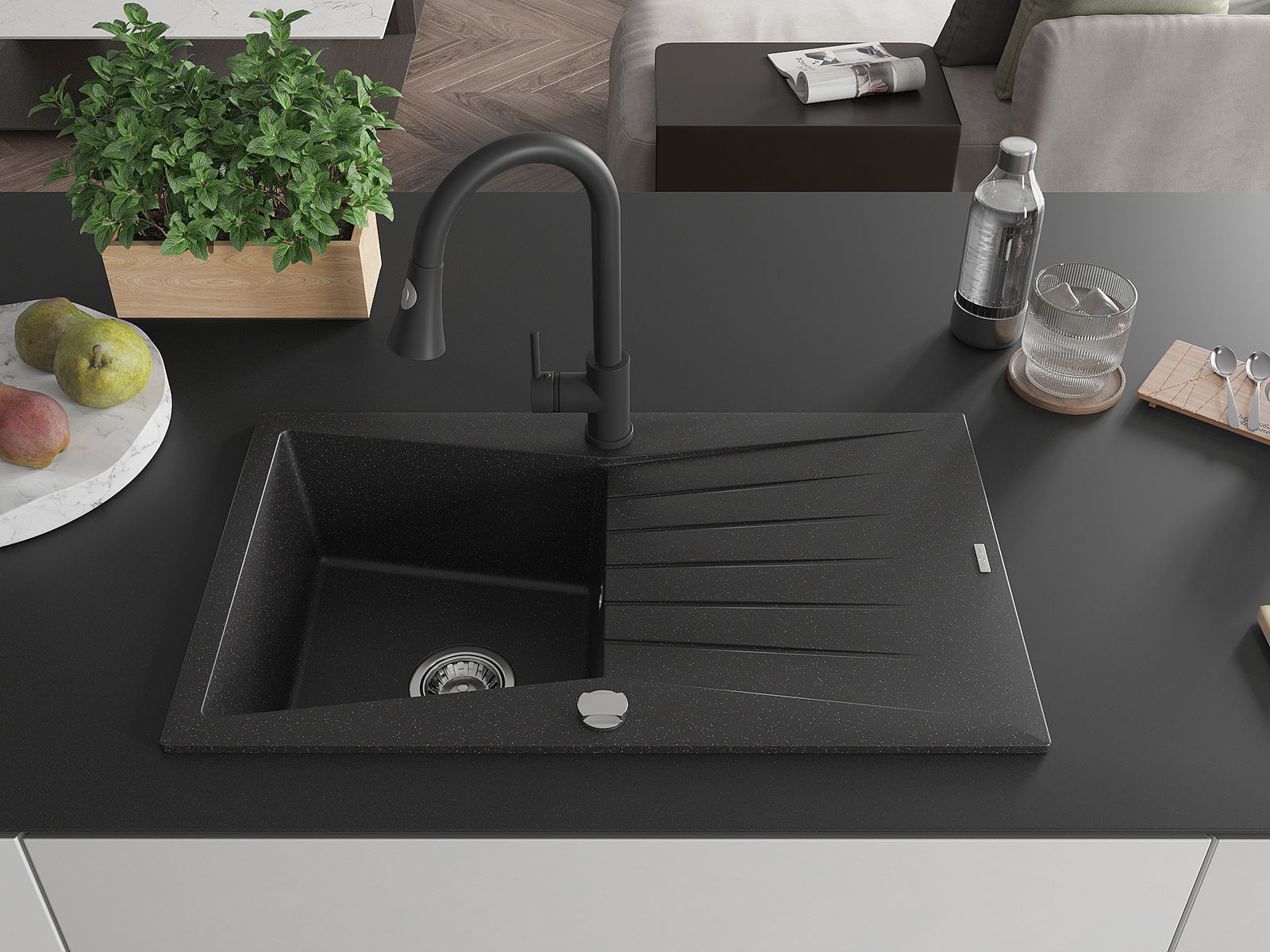 En väl skyddad yta på diskbänken förhindrar att smuts tränger in i dess inre strukturer. Tack vare detta är det ännu enklare att hålla diskbänken ren, och dess yta behåller sin estetik längre.