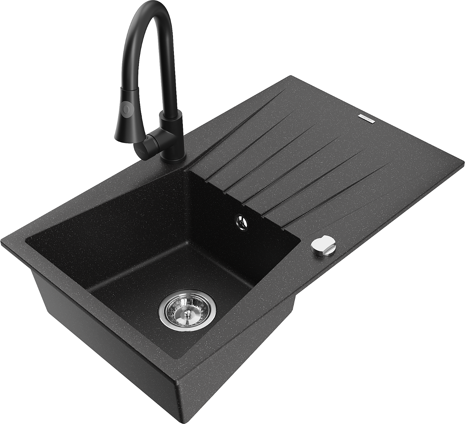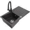 Mexen Cesar granit diskbänk med 1 fack med avrinning och köksblandare Elia, svart/silver metallic - 6514-73-670101-70