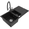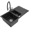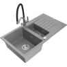 Mexen Matias 1,5-facklig diskbänk i granit med avrinningsplatta och Duo köksblandare, vit - 6502-20-671701-02