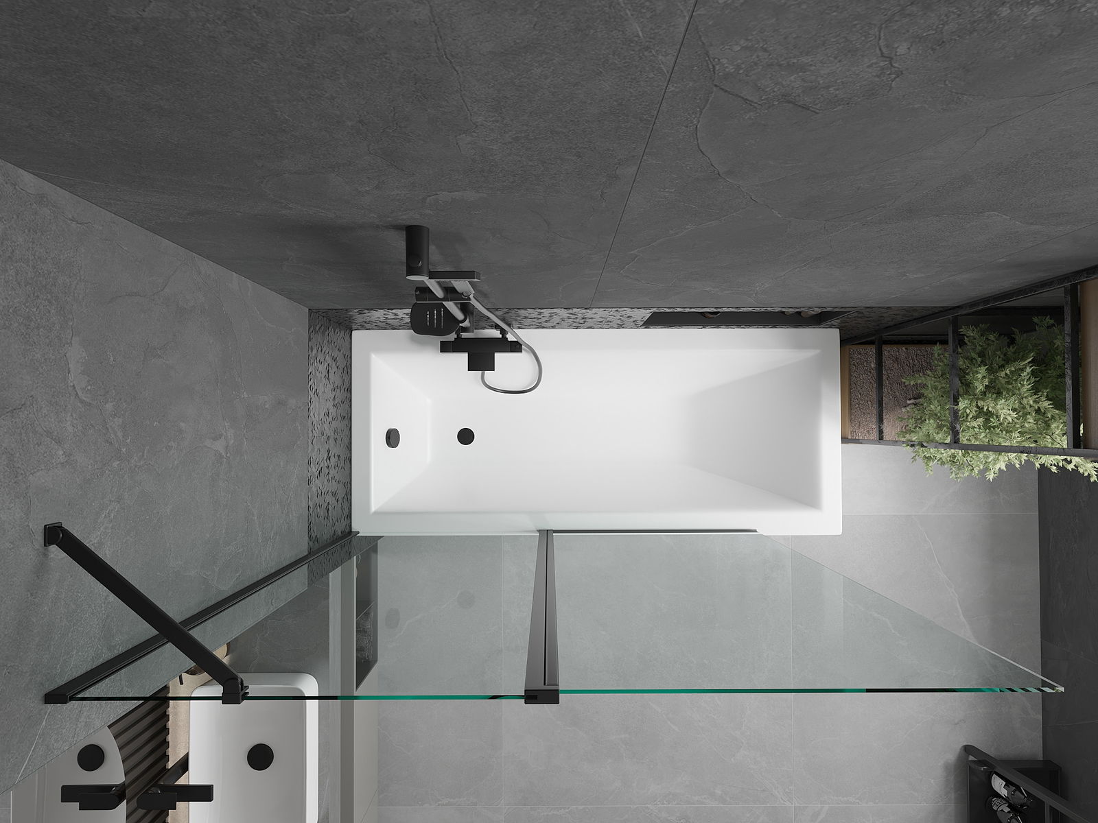 Skärmen har en rörlig vinge som kan fällas ihop. Denna lösning sparar mer utrymme i badrummet och möjliggör fri användning av det återstående utrymmet när vi inte använder badzonen.