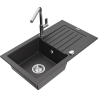 Mexen Pablo granitdiskbänk med 1 fack, avrinning och köksblandare Flora, svart - 6510-77-670401-00
