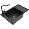 Mexen Elias granitdiskho 1-fack med avrinningsyta och köksblandare Flora, svart/silver metallik - 6511-73-670401-70-B
