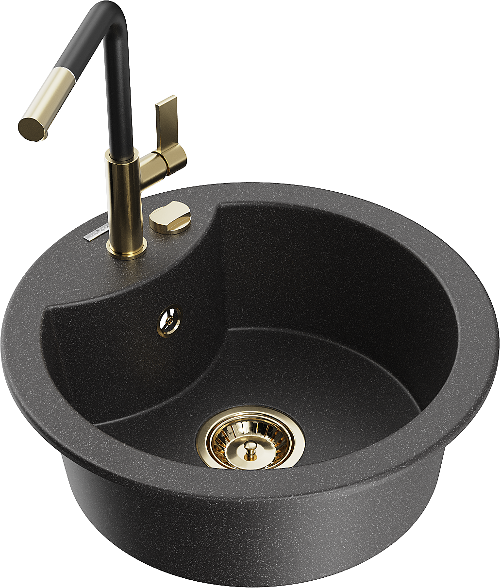 Mexen Diego granit diskbänk med 1 fack och Flora köksblandare, svart med stänk - 6512-76-670401-57-G