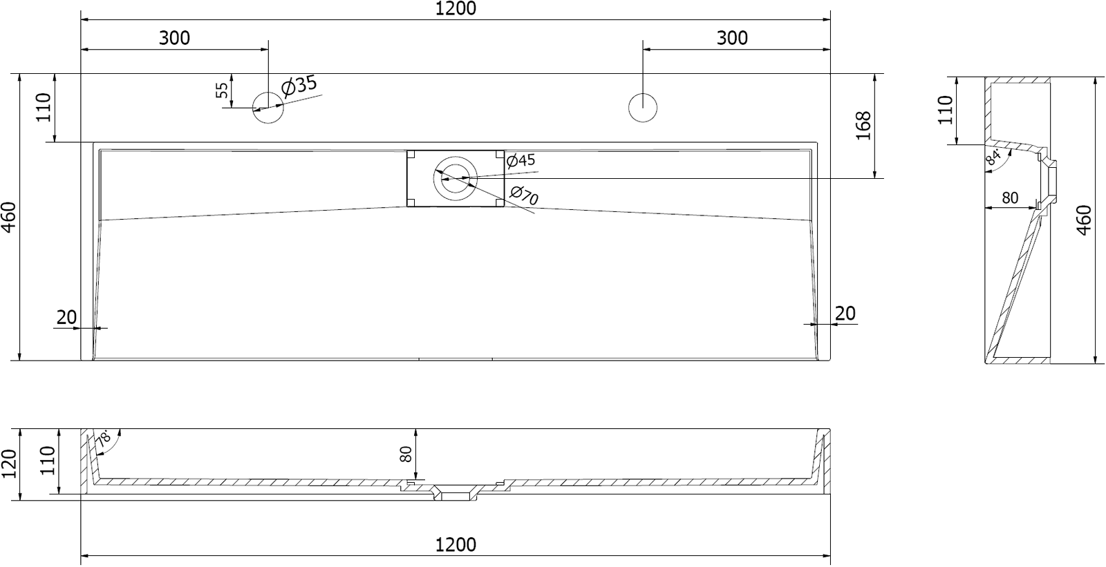 Tvättstället har ett hål där vi kan montera en kran. Detta sparar värdefull plats i badrummet och framhäver dess estetik. Denna lösning möjliggör även enklare rengöring runt tvättstället.
