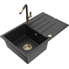 Mexen Bruno granitdiskho med en ho och avtappningsyta samt Flora köksblandare, svart med prickar - 6513-76-670401-57-G