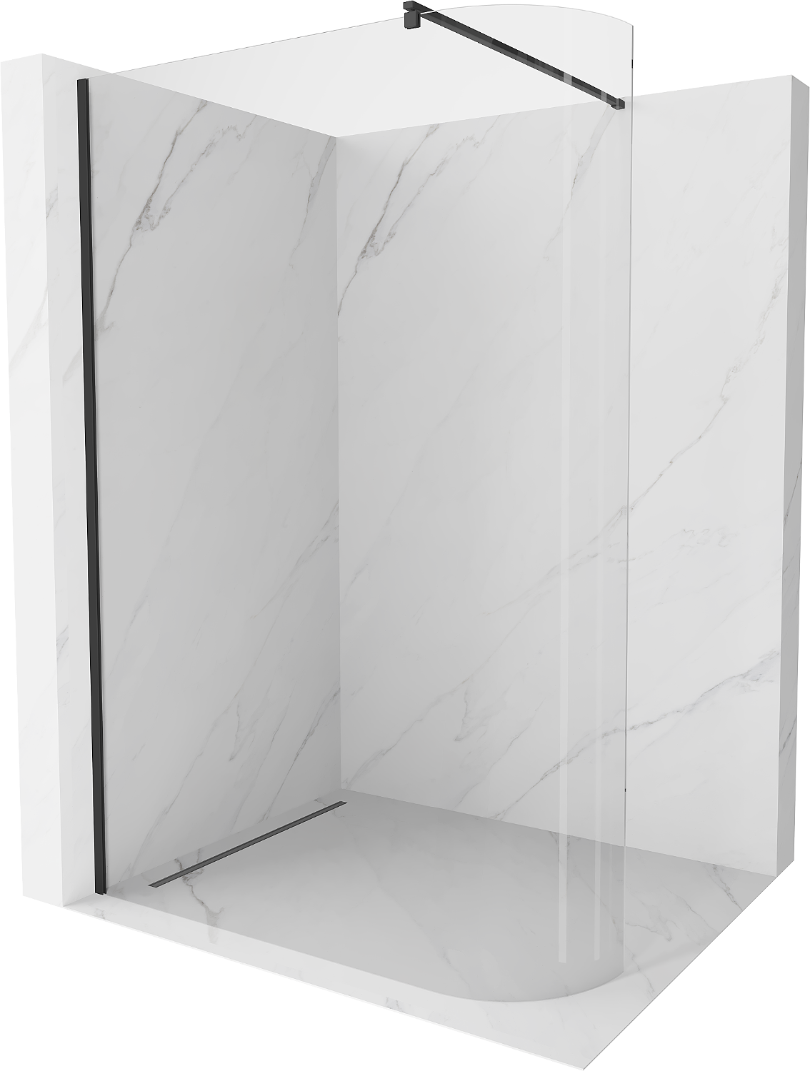 Mexen Kioto-R rundad Walk-in duschvägg 140 x 200 cm, transparent 8 mm, svart - 800-140-101-70-06