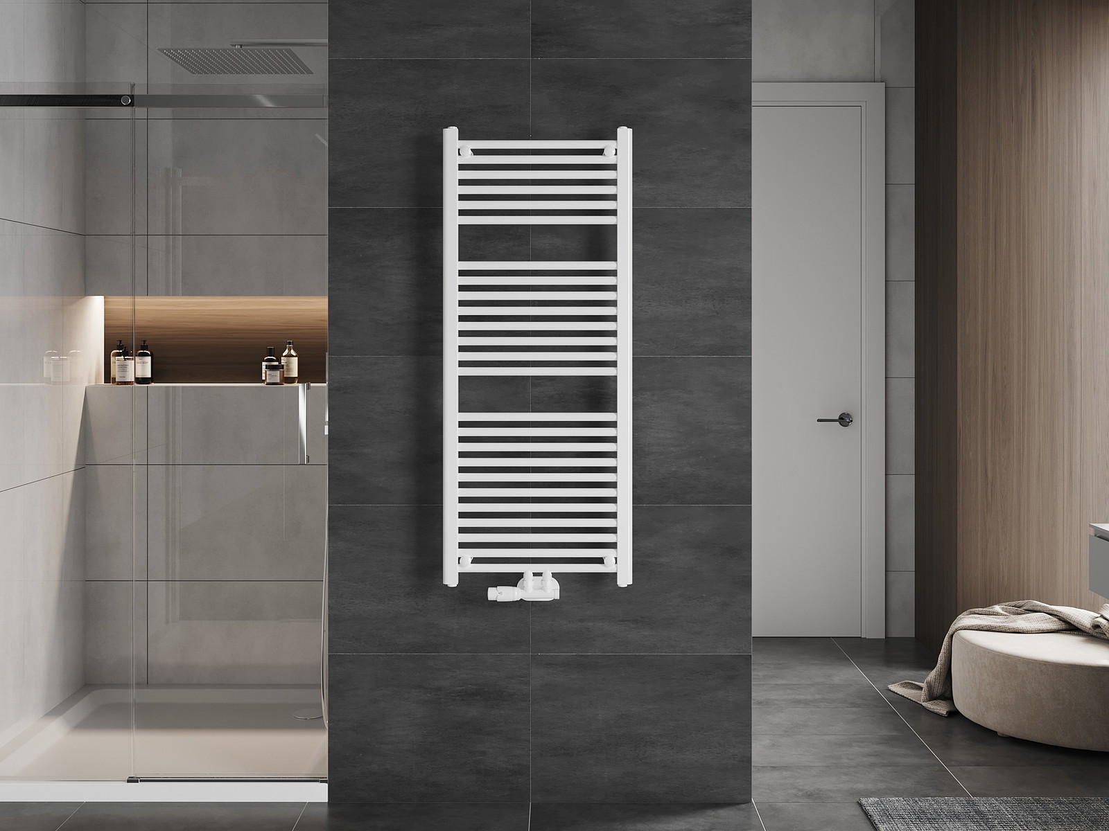 Mexen Mars är en handdukstork i storleken 1200 x 500 mm med en effekt på 528 W, perfekt för att säkerställa termisk komfort i badrummet. Den har en elegant vit färg (RAL 9016) som passar alla interiörer. Tillverkad av slitstarkt stål med brandklassning A1, garanterar säkerhet och hållbarhet. Optimala anslutningsavstånd underlättar installationen: 45 cm nedre eller 5 cm mitt, och möjligheten att montera en värmespiral bidrar till större mångsidighet. En uppsättning medföljer inkluderar fästen, monteringssats, tätningspluggar och ventilationsplugg, vilket gör installationen snabb och problemfri.