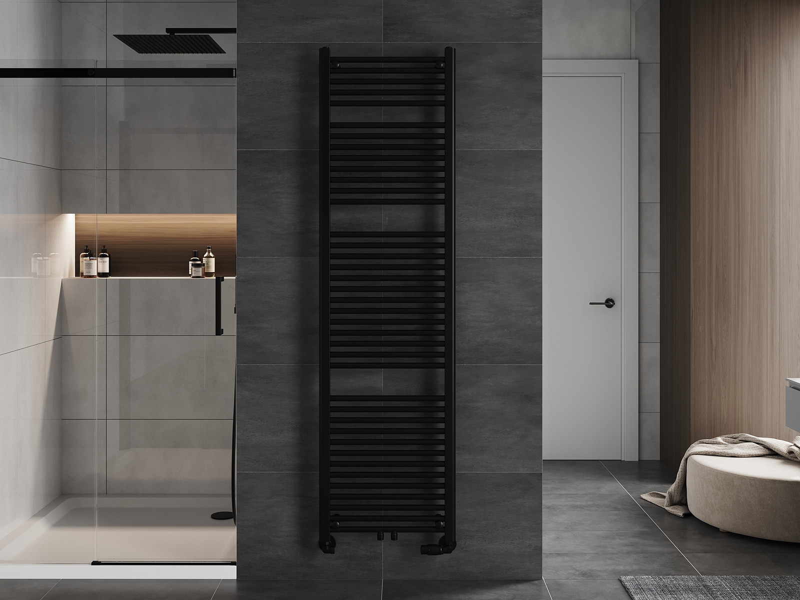 Mexen Mars är en elegant badrumselement med måtten 1800 x 500 mm och effekten 814 W, idealiskt för moderna utrymmen. Dess svarta färg (RAL 9005) och stålstruktur ger stil samtidigt som den säkerställer hållbarhet. Med möjligheten att installera en värmeelement och olika anslutningsalternativ (nedre 45 cm, mittre 5 cm) är detta element mycket mångsidigt. Den hållbara lackytan skyddar mot korrosion och monteringsanordningen med tillbehör underlättar installationen. Maximal arbetstemperatur är 95 °C, vilket garanterar hög värmeeffektivitet.