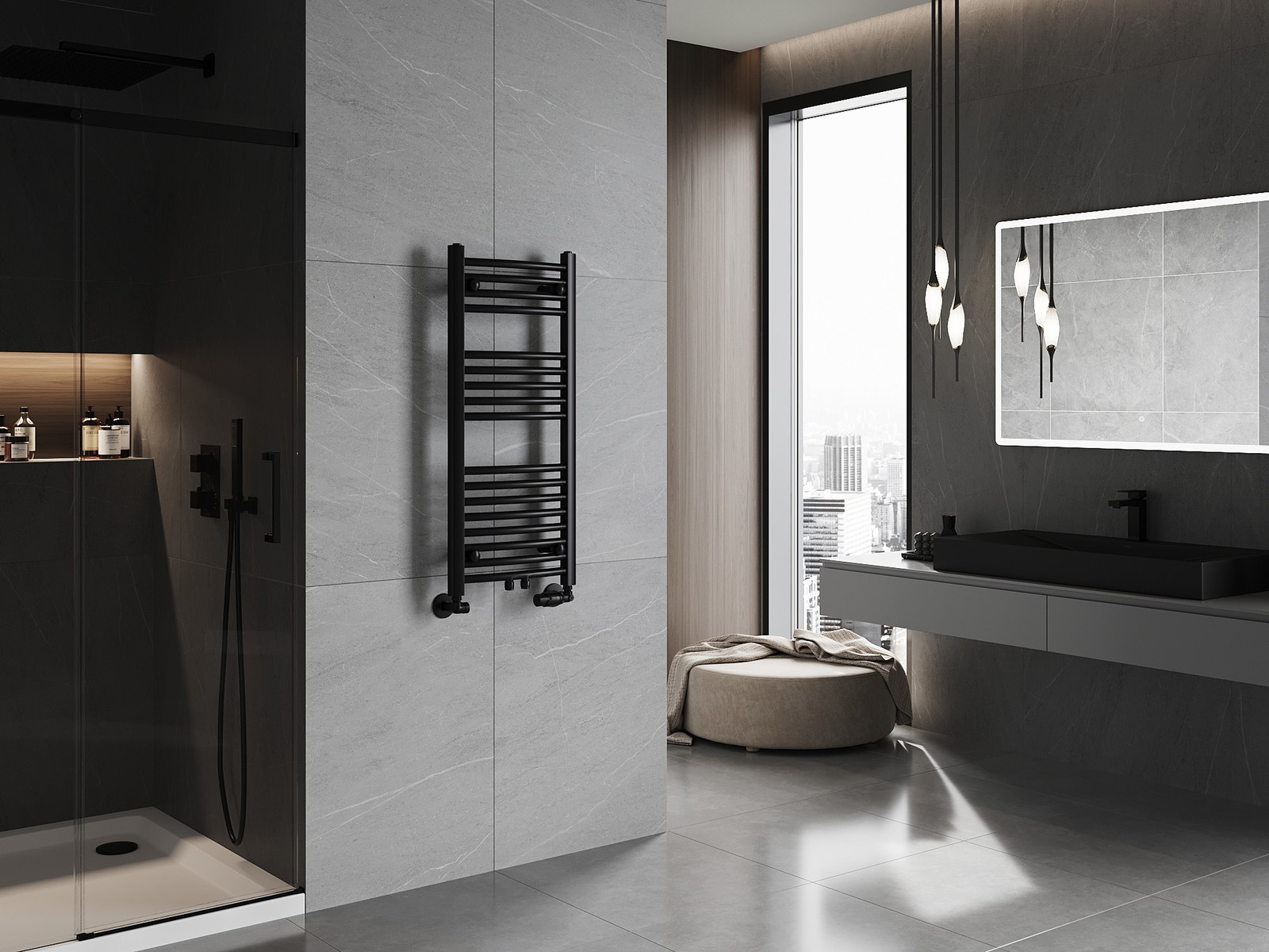 Mexen Ares är en stilren badrumshanddukstork som inte bara ger optimal värme utan även ser vacker ut i vilket badrum som helst. Med dimensionerna 900 x 400 mm och en värmekapacitet på 312 W fungerar den utmärkt i mindre utrymmen. Den svarta färgen RAL 9005 tillför elegans, och den robusta stålkonstruktionen samt den hållbara lacken garanterar korrosionsbeständighet. Universella anslutningar och möjligheten att montera en värmestav ökar funktionaliteten för denna modell och säkerställer bekvämlighet vid användning och enkel installation.
