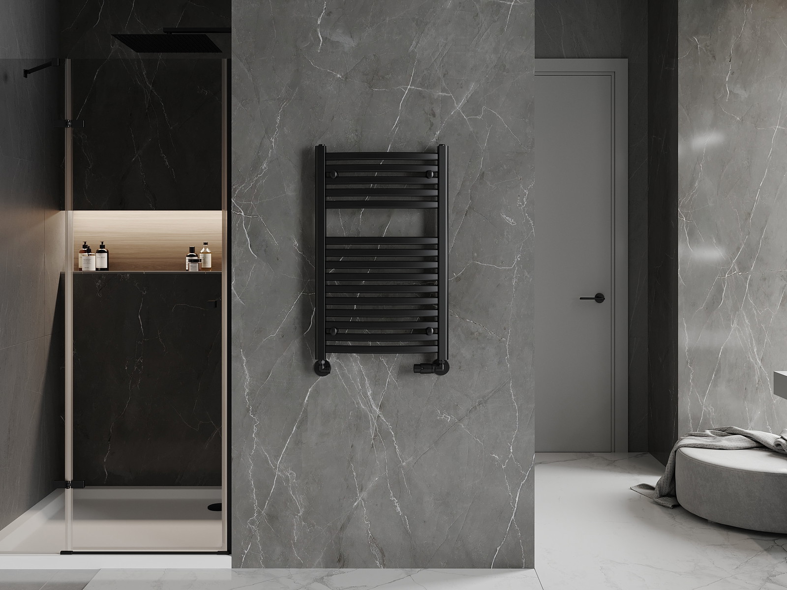 Mexen Helios badrumselement är ett utmärkt val för dem som uppskattar funktionalitet och stil. Med mått 800 x 500 mm passar det perfekt i vilket badrum som helst. Dess värmeeffekt är 381 W, vilket garanterar värmekomfort även under kyligare dagar. Den svarta färgen RAL 9005 och stålkonstruktionen ger ett modernt utseende och hållbarhet. Elementet är korrosionsbeständigt tack vare den högkvalitativa lackbeläggningen. Möjlighet att montera värmepatron och installationssats ingår som ytterligare fördelar av denna produkt.