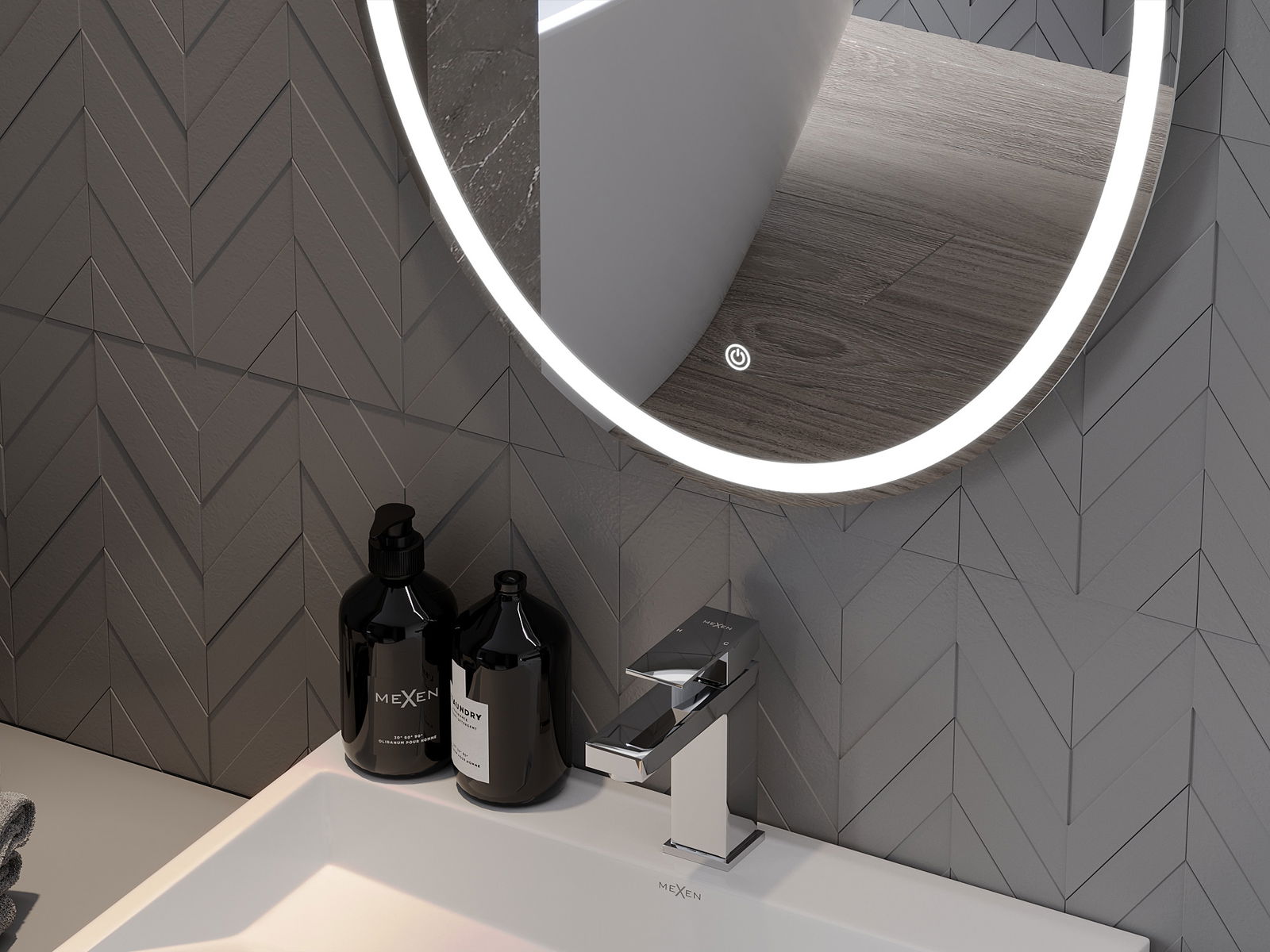 Belysningen av spegeln kan enkelt och bekvämt aktiveras genom att beröra strömbrytaren på spegelytan. Detta möjliggör snabb belysning utan att behöva sträcka sig efter en traditionell ljusströmbrytare placerad längre bort.