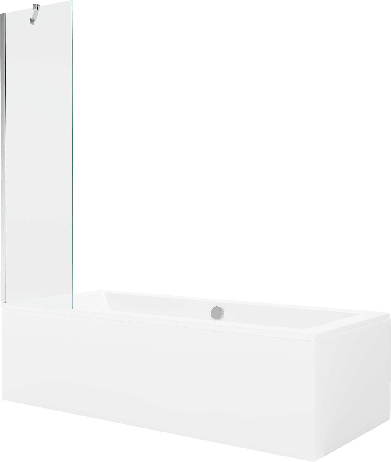Mexen Cube rektangulärt badkar 180 x 80 cm med förklädnad och 1-vikskärm 50 cm, transparent, krom - 550518080X9505000001