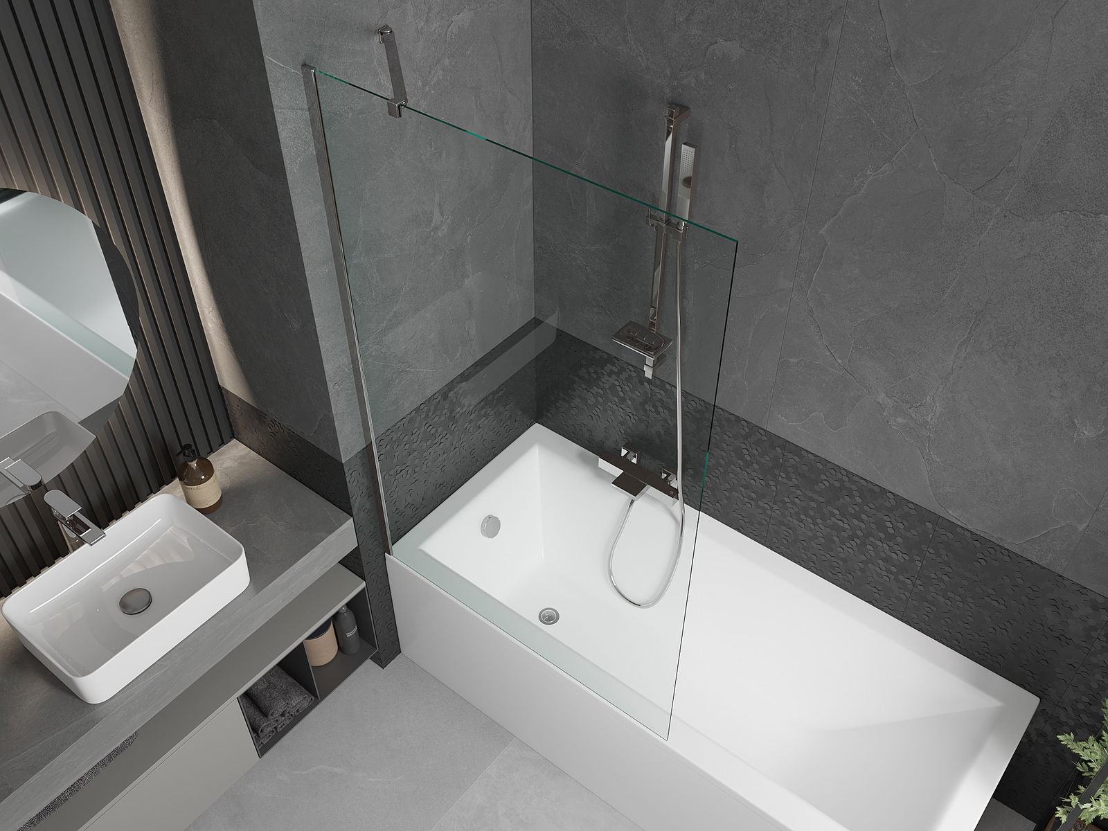 Effektivt skydd mot att vatten spills över vid bad. Skärmen har tätningar som perfekt anpassar sig till glasytan och badkarskanten. En funktionell lösning som garanterar säkerhet och enkel rengöring.