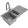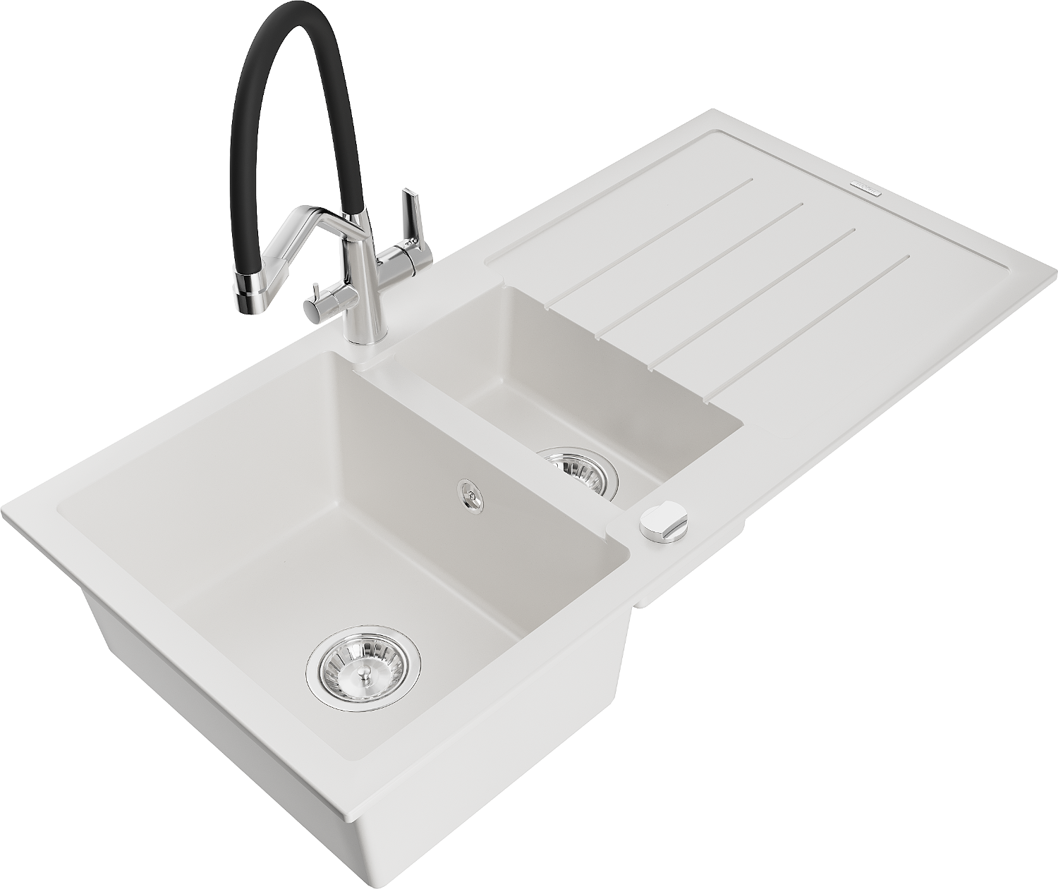 Mexen Andres granitdiskbänk 1,5-kammare med avrinningsyta och kökskran Duo, vit - 6515-20-671701-07