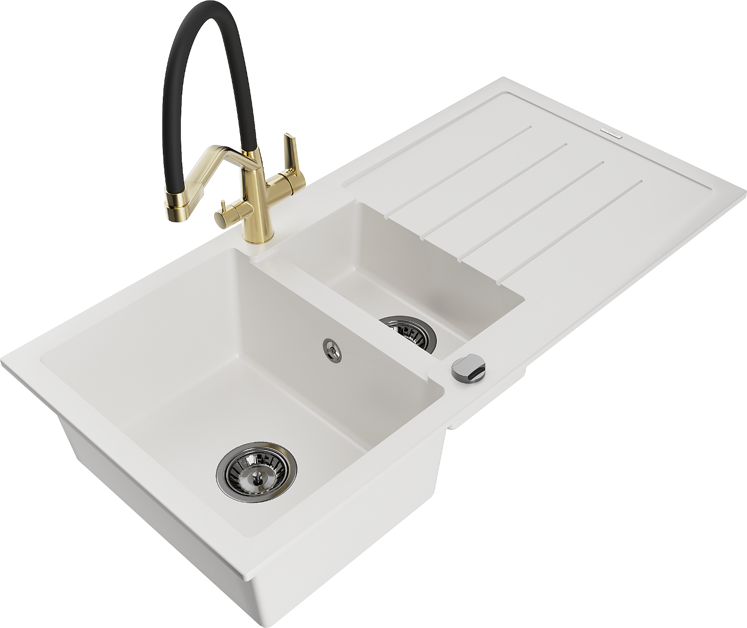 Mexen Andres granitdiskbänk 1,5-fack med avrinning och Duo köksblandare, vit - 6515-20-671701-57-B