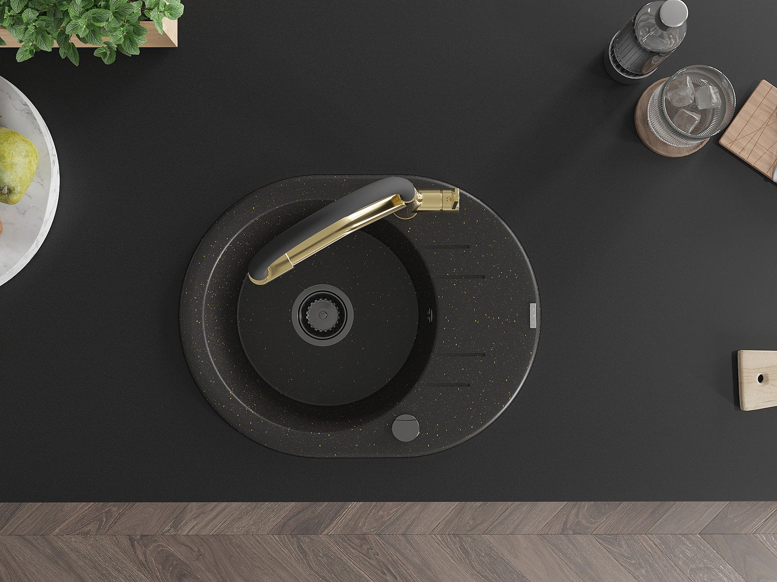 Mexen Kevin Granitdiskho med 1 facka och köksblandare Duo, svart/guld metallic - 6517-75-671701-57-B