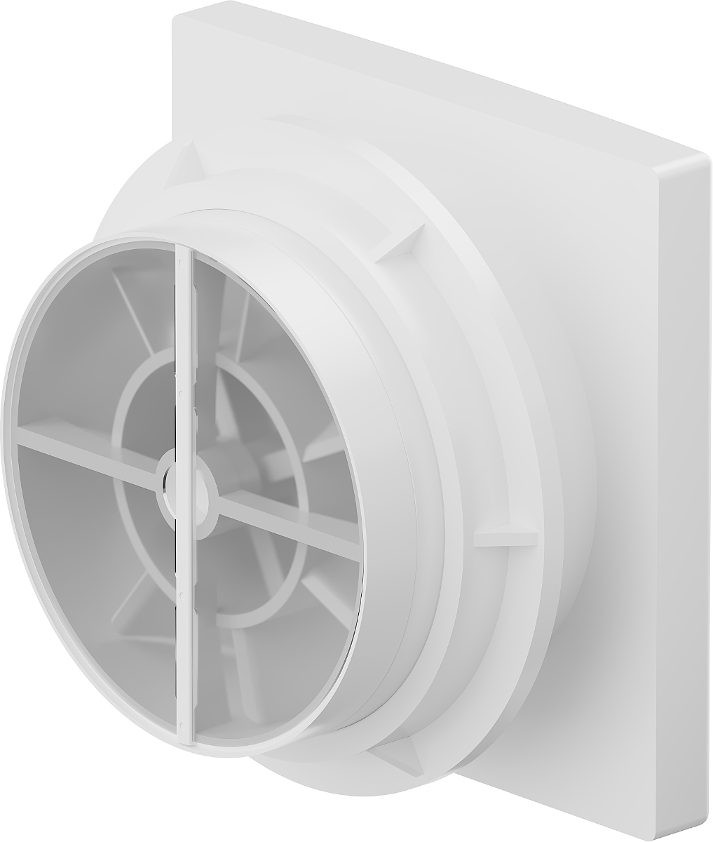 Enheten är utrustad med en mekanism som förhindrar att luft strömmar tillbaka till rummet när fläkten stängs av. Särskilt användbar i badrum, där förhindrande av oönskad luftflöde kan förbättra komfort och hygien.