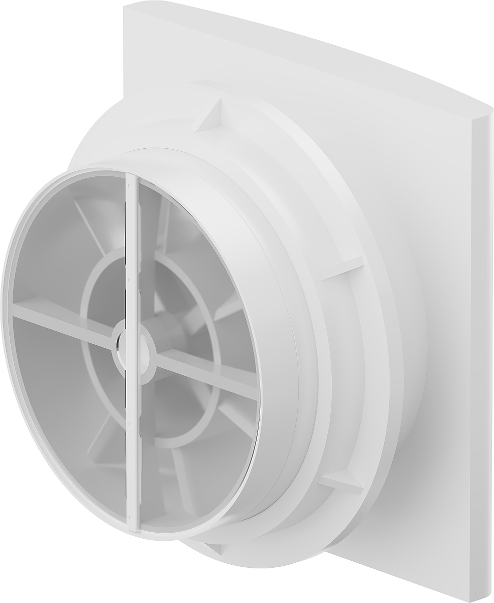 Enheten är utrustad med en mekanism som förhindrar att luft strömmar tillbaka till rummet när fläkten stängs av. Särskilt användbar i badrum, där förhindrande av oönskad luftflöde kan förbättra komfort och hygien.