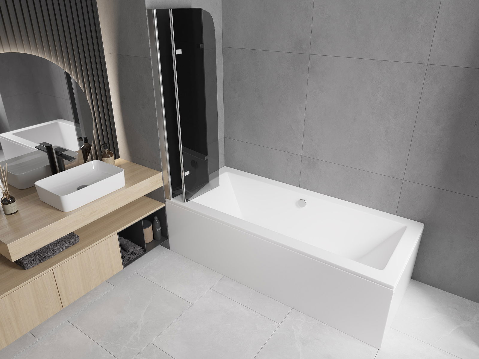 Skärmen är gjord av tre vingar med möjlighet att vika ihop dem. Denna lösning sparar mer utrymme i badrummet och möjliggör fri användning av det återstående utrymmet när vi inte använder badområdet.
