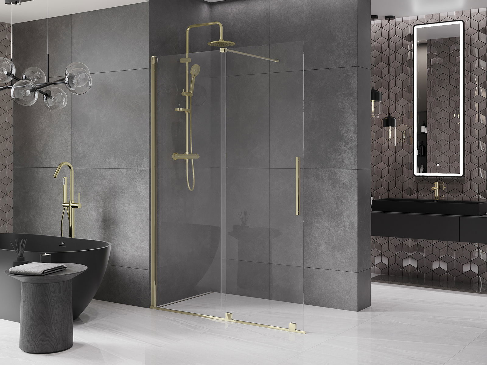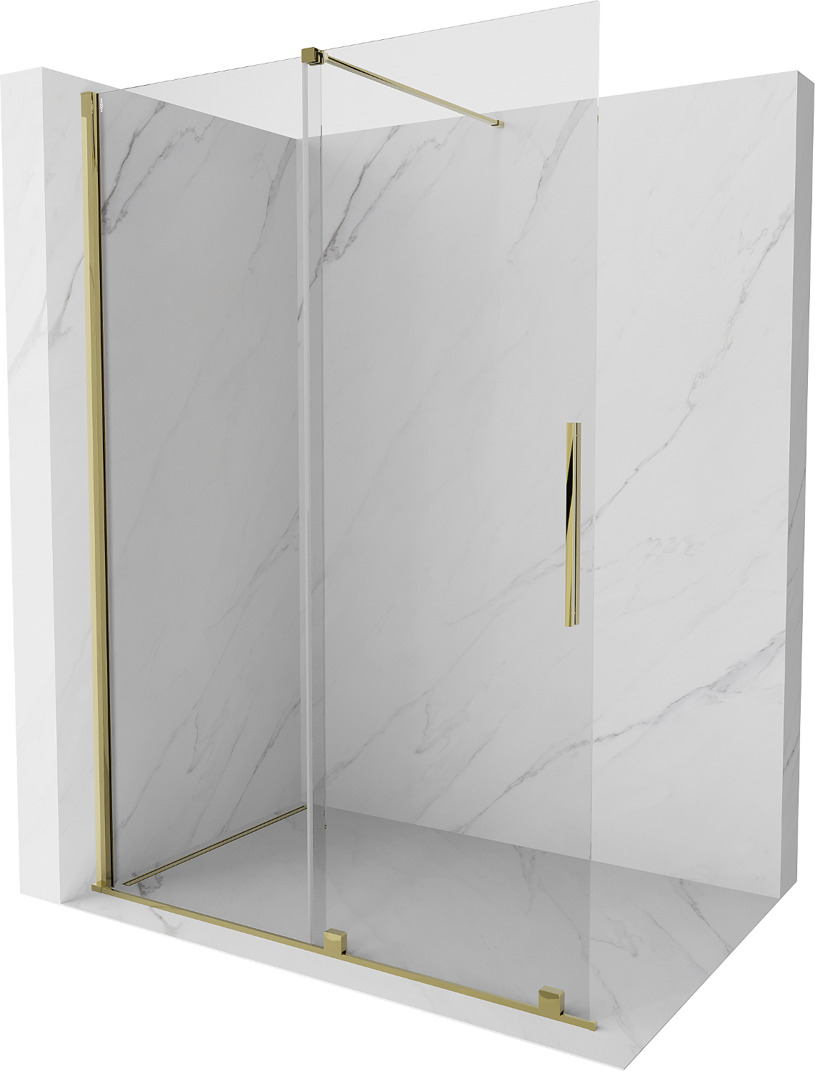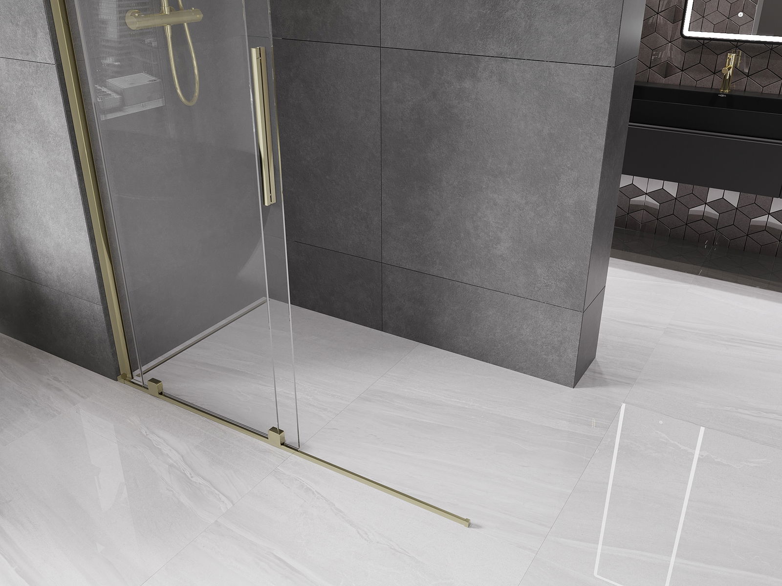 Mexen Velar Skjutbar duschvägg Walk-in 140 x 200 cm, transparent 8 mm, guld - 871-140-000-03-50