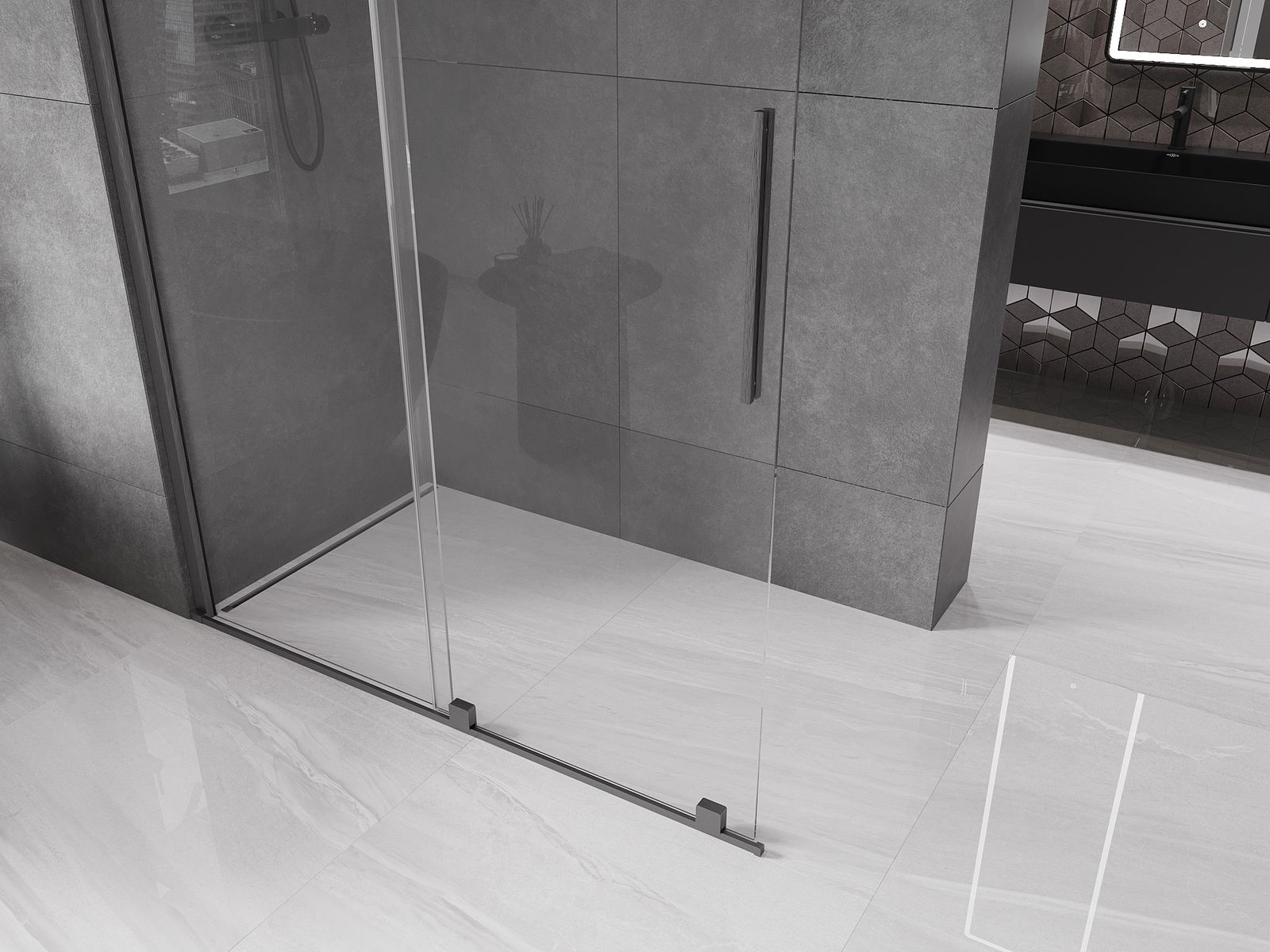 Mexen Velar skjutbar duschvägg Walk-in 140 x 200 cm, transparent 8 mm, gevind grå borstad - 871-140-000-03-66