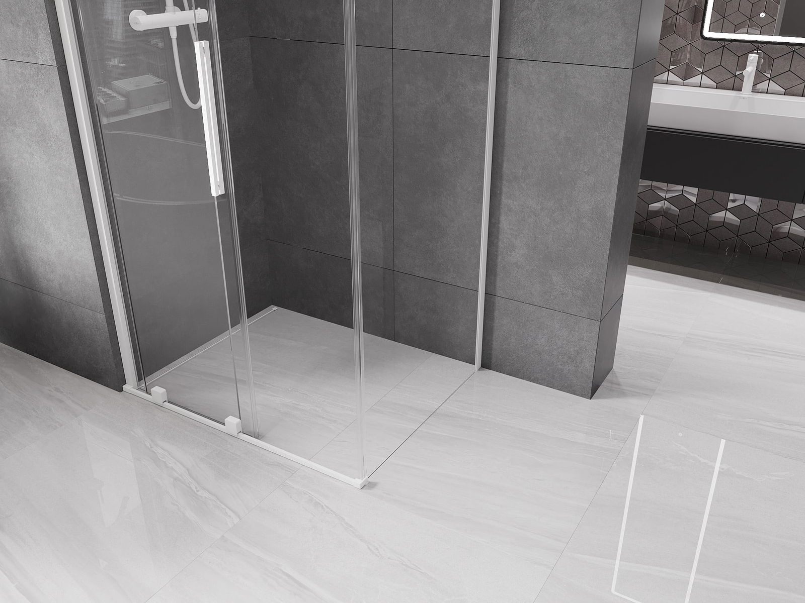 Mexen Velar skjutbar duschkabin 120 x 70 cm, transparent, vit - 871-120-070-01-20