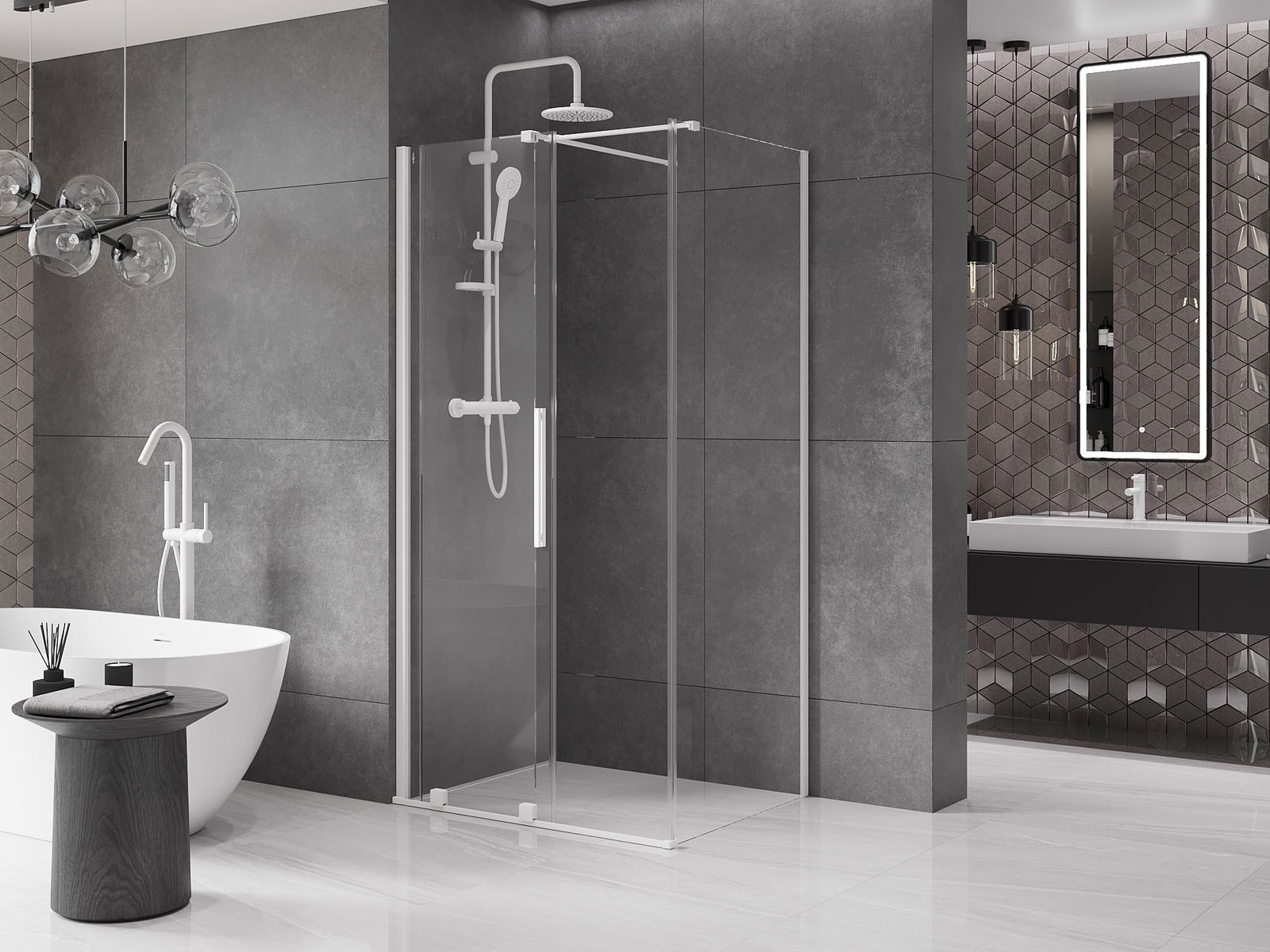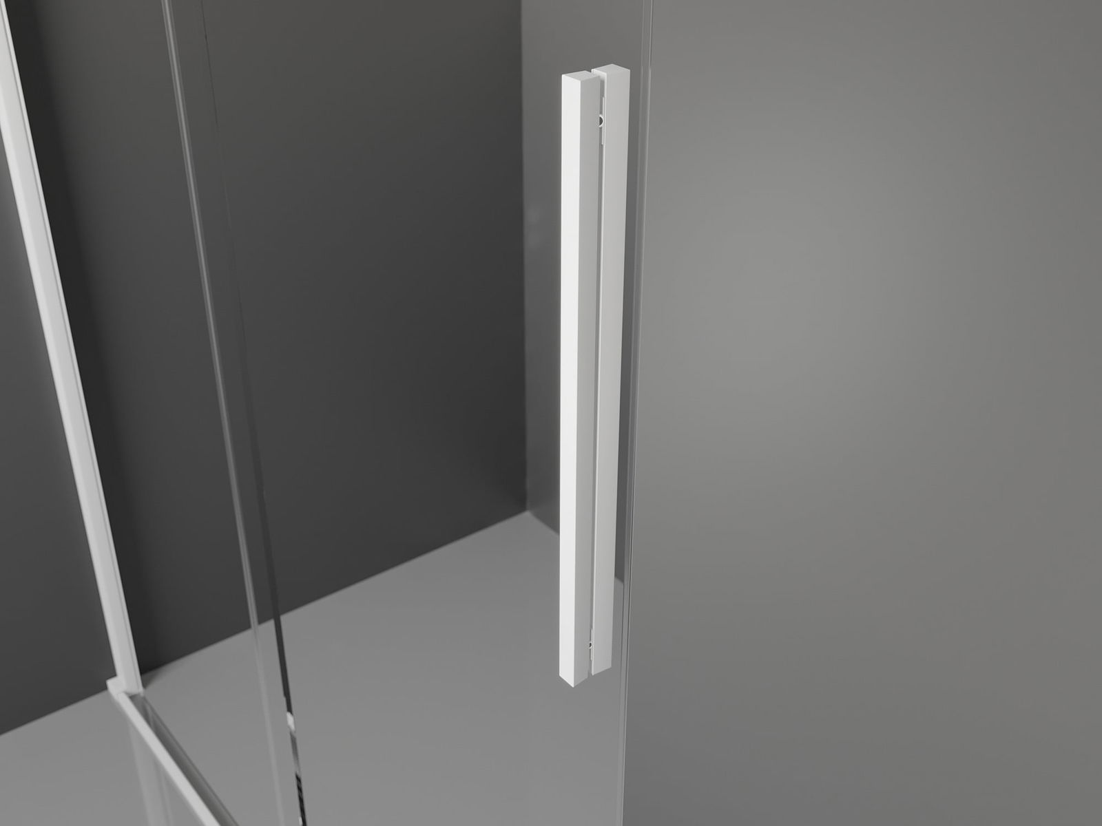 Det praktiska och bekväma handtaget är tillverkat av rostfritt stål. Den moderna formen i kombination med en finish som matchar profilernas färg ger helheten ett modernt och stiligt utseende, vilket framhäver estetiken i varje badrum.