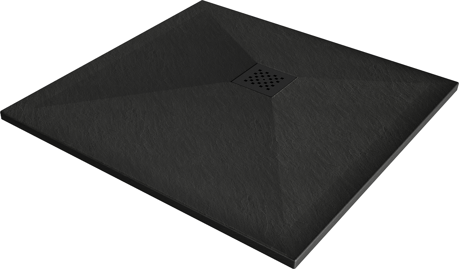 Mexen Stone+ fyrkantig kompositduschkar 70 x 70 cm, svart, svart täcklock - 44707070-B