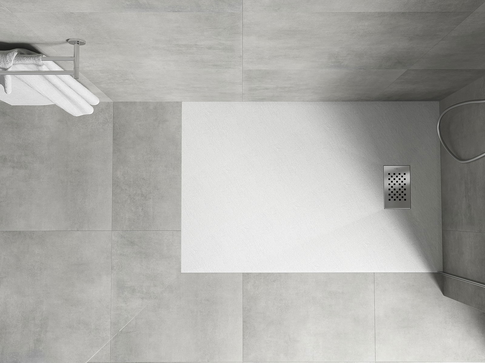 Ytan på duschbrickan påminner om sten i sin struktur. Den utgör en unik kombination av naturligt utseende med modern inredning. Den tillför karaktär, framhäver estetik och elegans i badrummets inredning och fascinerar med sin form.
