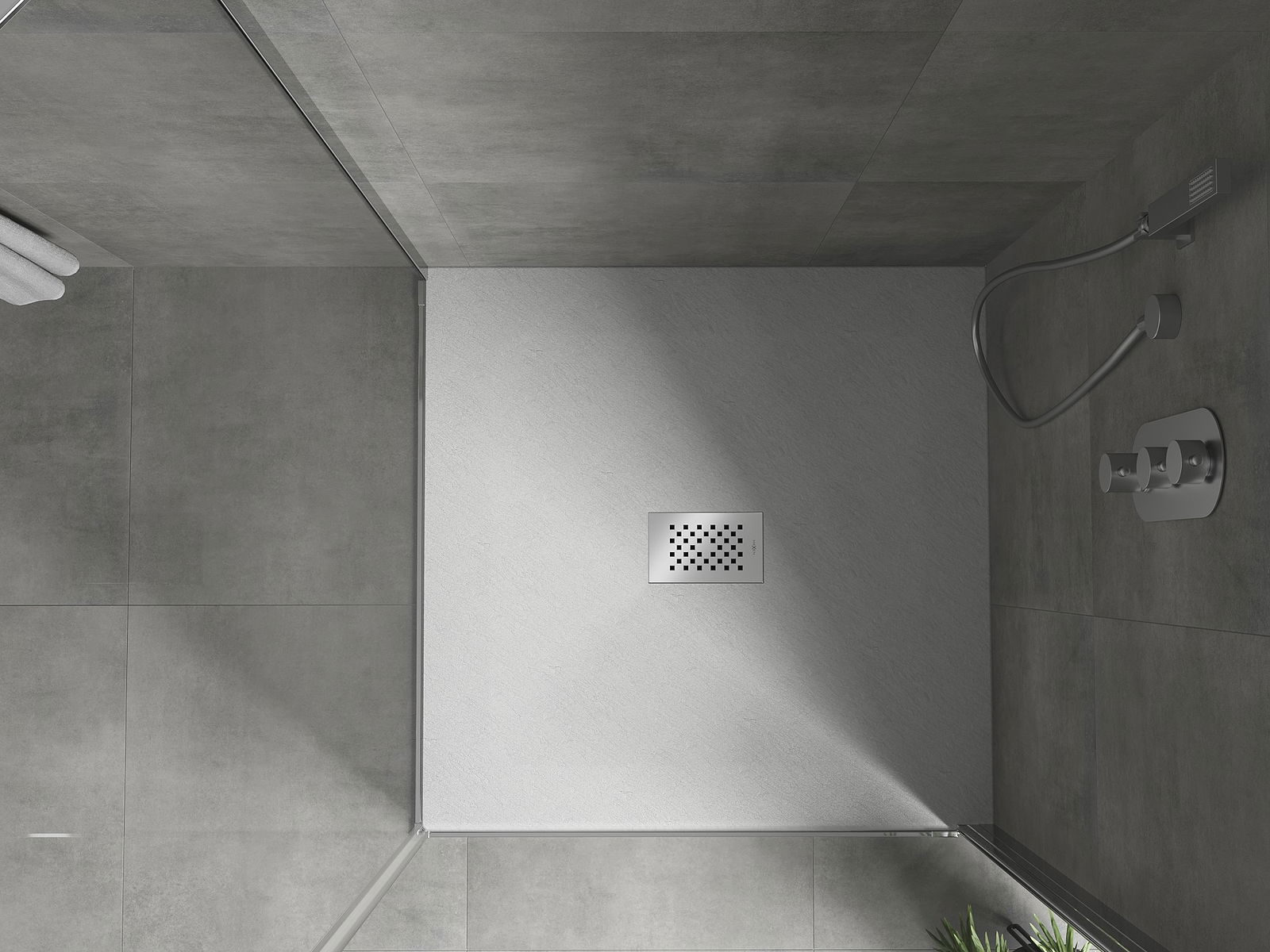 Ytan på duschbrickan påminner om sten i sin struktur. Den utgör en unik kombination av naturligt utseende med modern inredning. Den tillför karaktär, framhäver estetik och elegans i badrummets inredning och fascinerar med sin form.