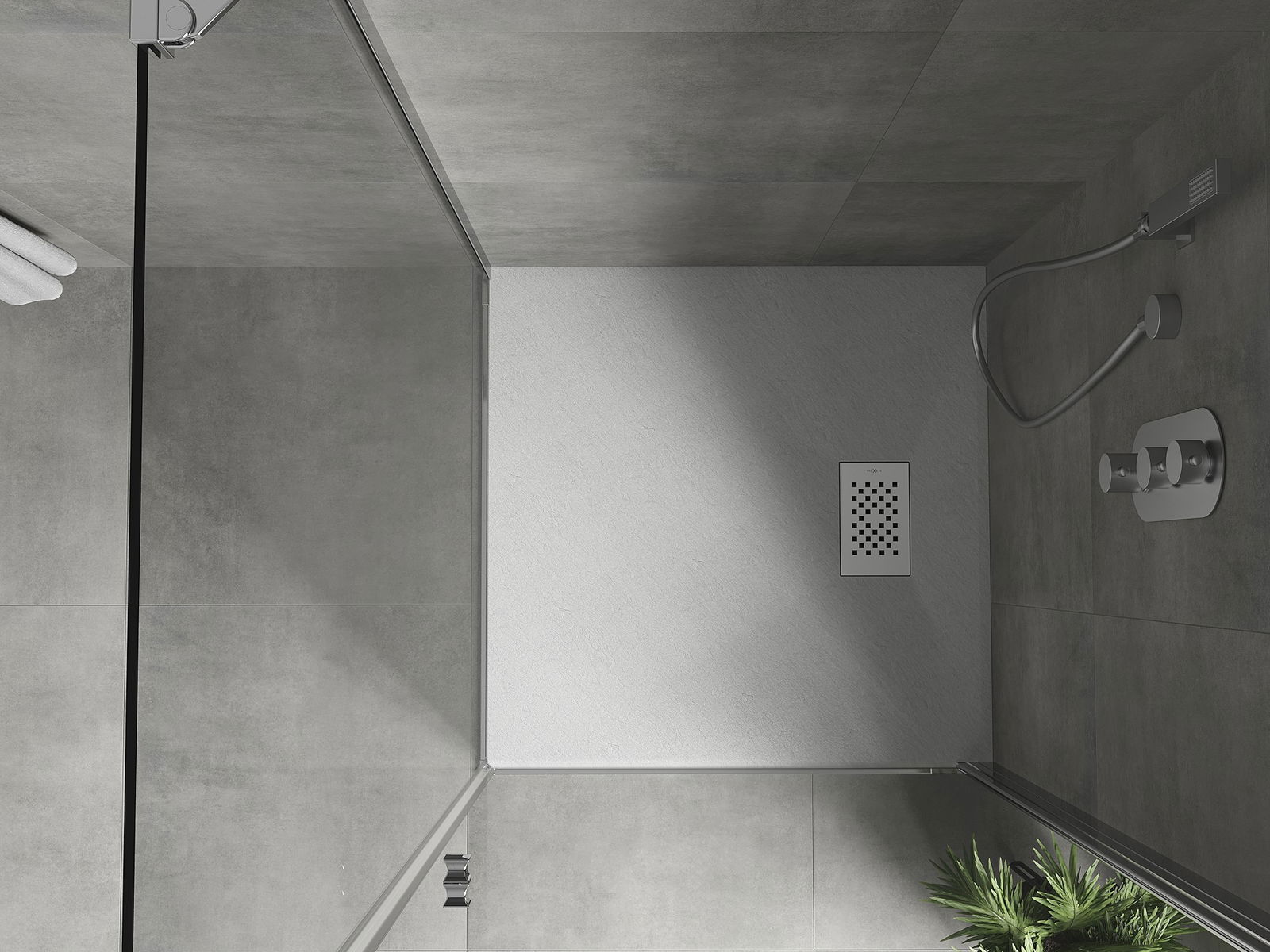 Ytan på duschbrickan påminner om sten i sin struktur. Den utgör en unik kombination av naturligt utseende med modern inredning. Den tillför karaktär, framhäver estetik och elegans i badrummets inredning och fascinerar med sin form.