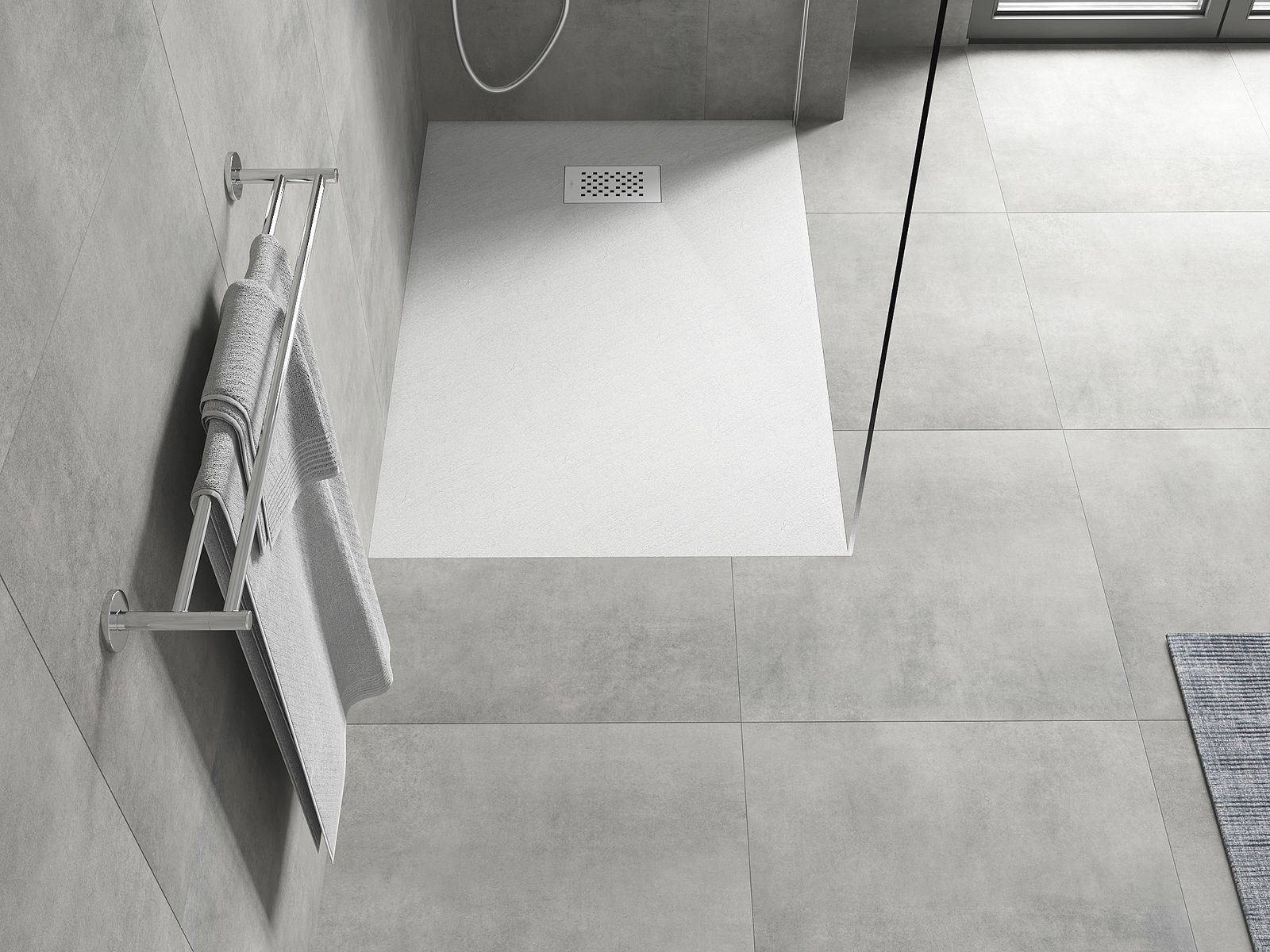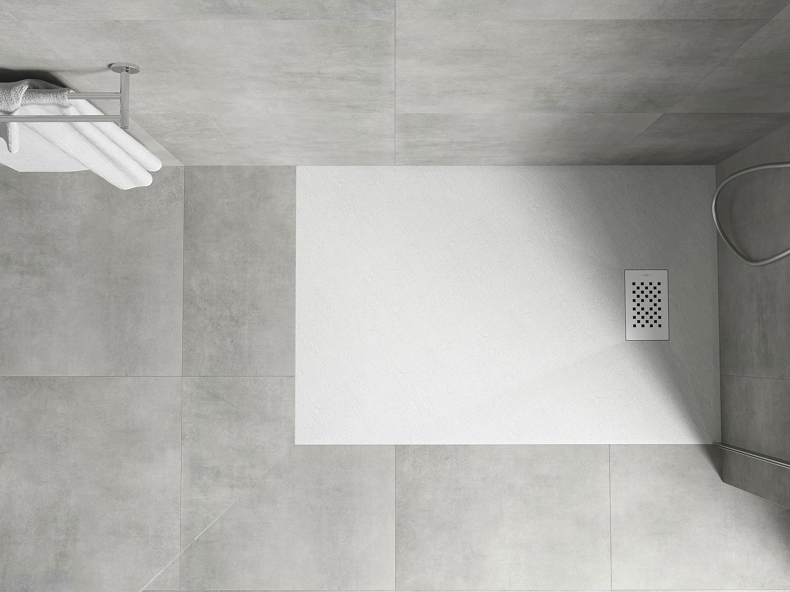 Ytan på duschbrickan påminner om sten i sin struktur. Den utgör en unik kombination av naturligt utseende med modern inredning. Den tillför karaktär, framhäver estetik och elegans i badrummets inredning och fascinerar med sin form.