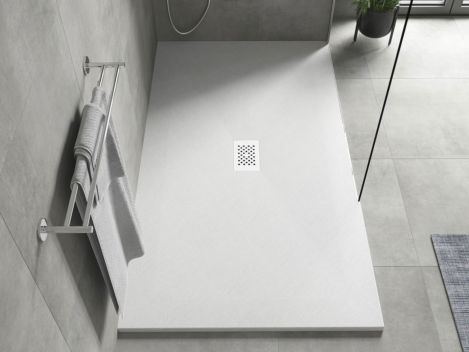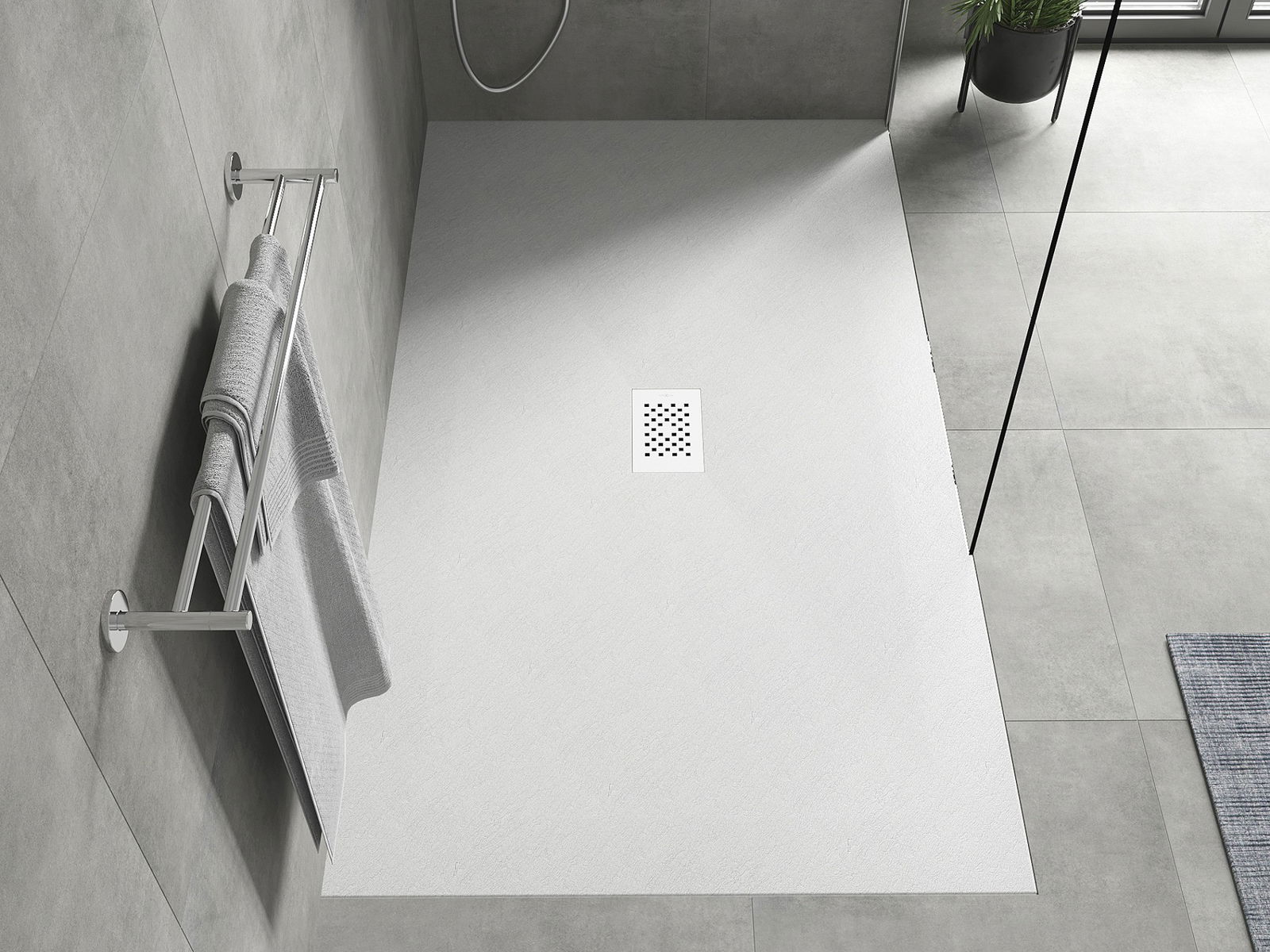 Ytan på duschbrickan påminner om sten i sin struktur. Den utgör en unik kombination av naturligt utseende med modern inredning. Den tillför karaktär, framhäver estetik och elegans i badrummets inredning och fascinerar med sin form.
