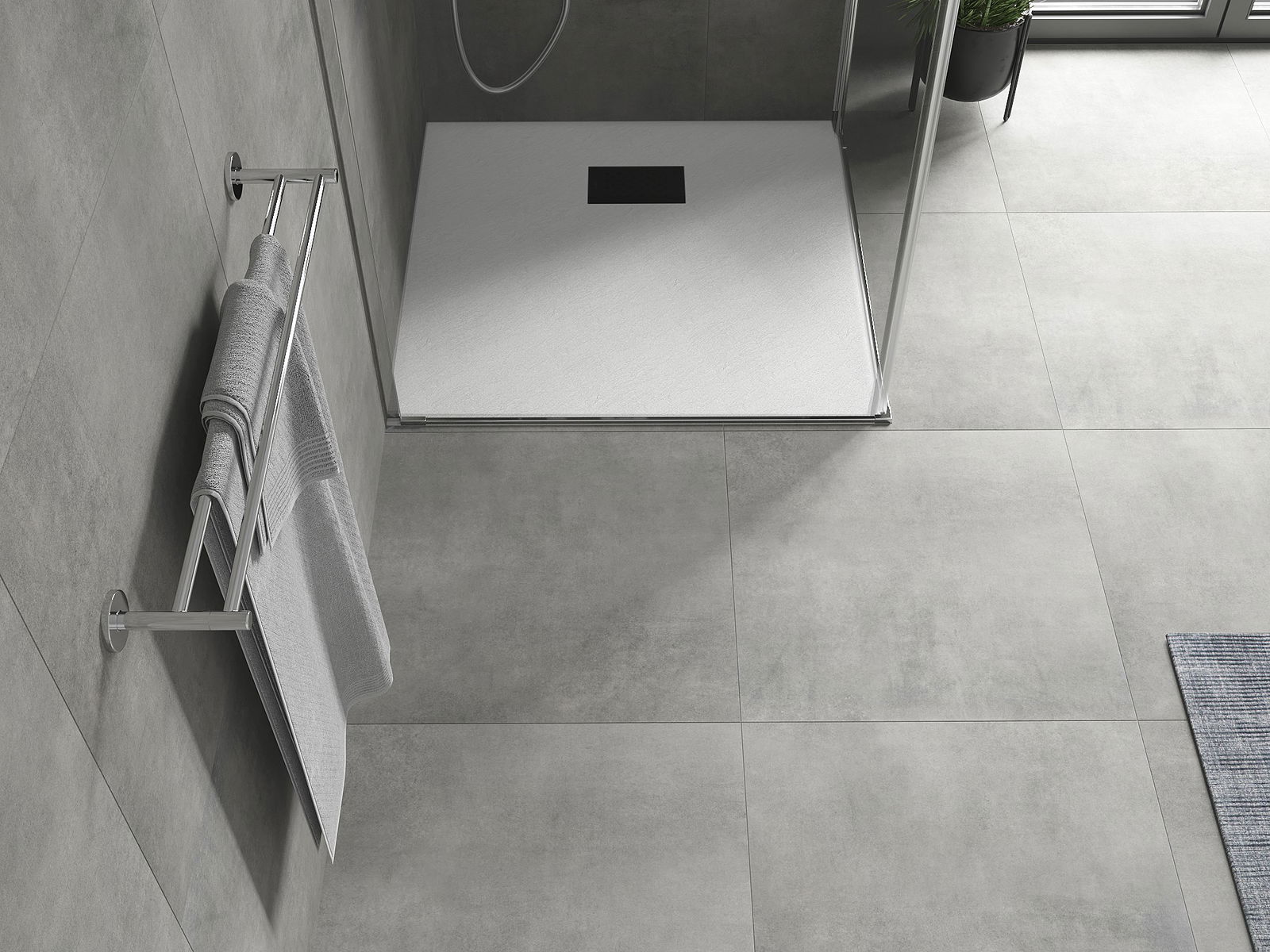 Ytan på duschbrickan påminner om sten i sin struktur. Den utgör en unik kombination av naturligt utseende med modern inredning. Den tillför karaktär, framhäver estetik och elegans i badrummets inredning och fascinerar med sin form.