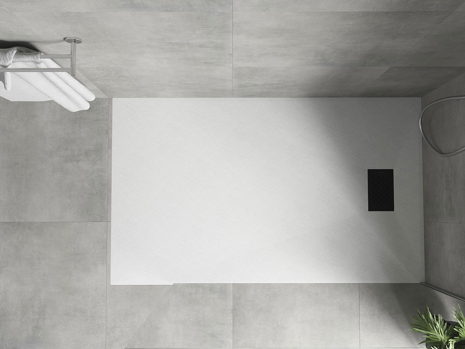 Ytan på duschbrickan påminner om sten i sin struktur. Den utgör en unik kombination av naturligt utseende med modern inredning. Den tillför karaktär, framhäver estetik och elegans i badrummets inredning och fascinerar med sin form.
