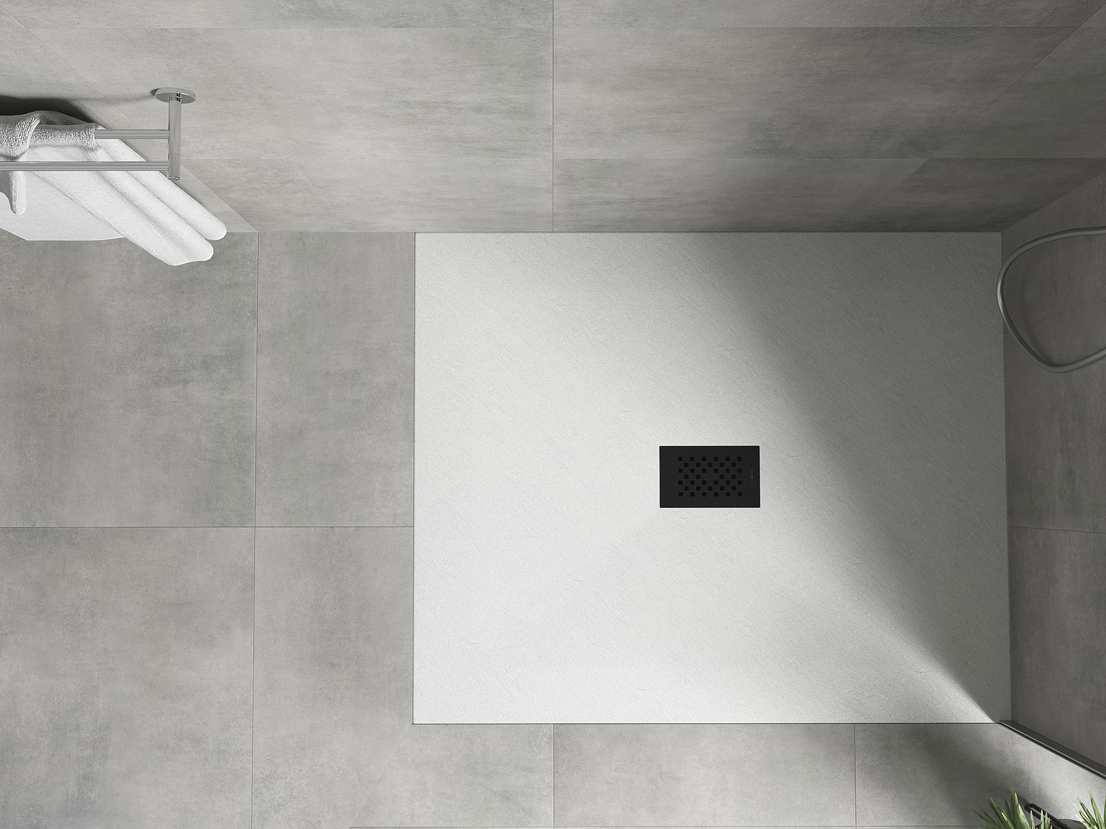 Ytan på duschbrickan påminner om sten i sin struktur. Den utgör en unik kombination av naturligt utseende med modern inredning. Den tillför karaktär, framhäver estetik och elegans i badrummets inredning och fascinerar med sin form.