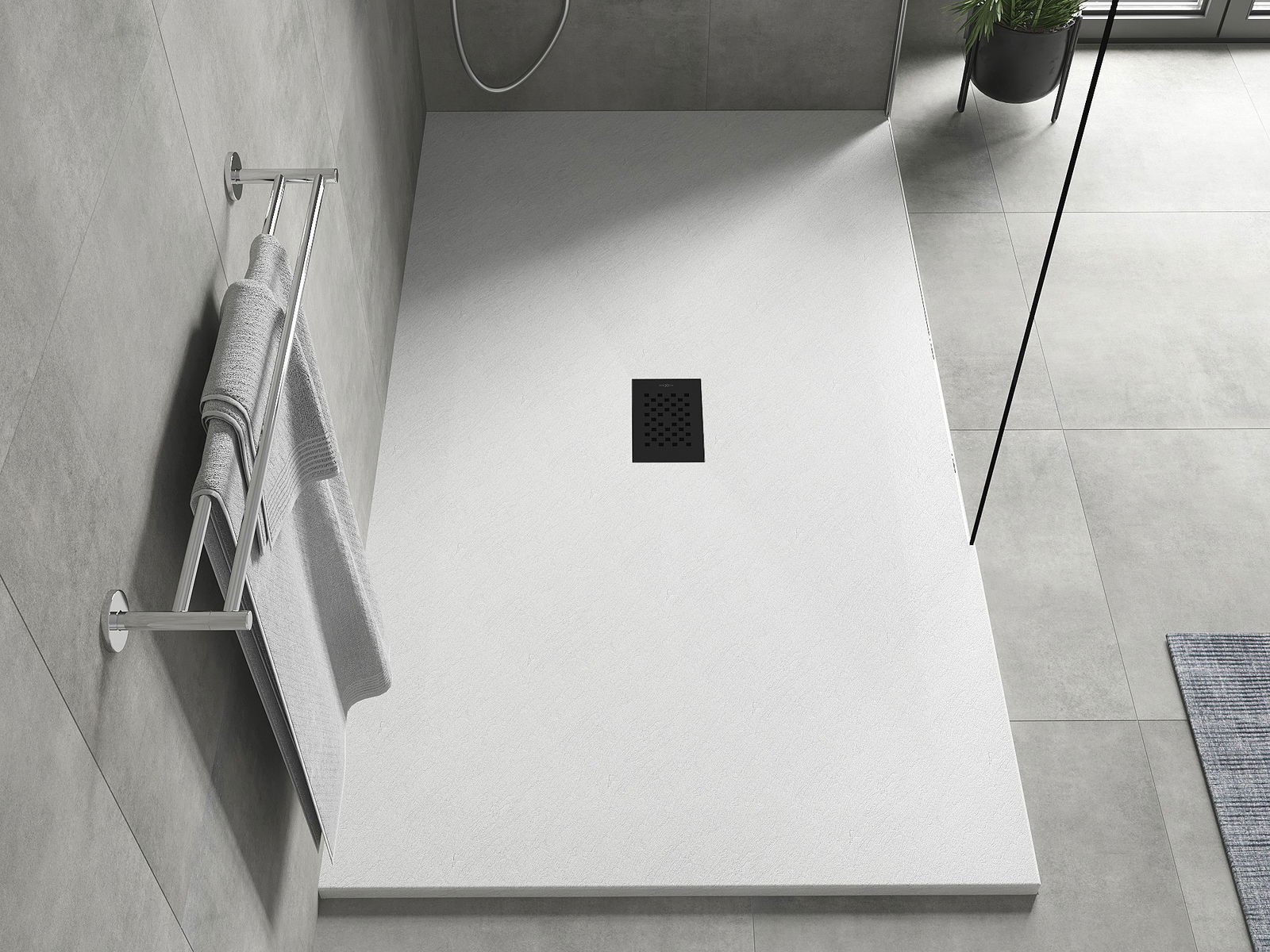 Ytan på duschbrickan påminner om sten i sin struktur. Den utgör en unik kombination av naturligt utseende med modern inredning. Den tillför karaktär, framhäver estetik och elegans i badrummets inredning och fascinerar med sin form.
