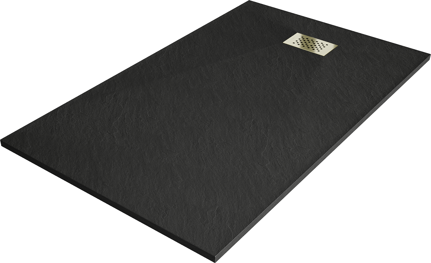 Mexen Hugo rektangulär duschbricka SMC 160 x 70 cm, svart, täckplatta guld - 42707016-G