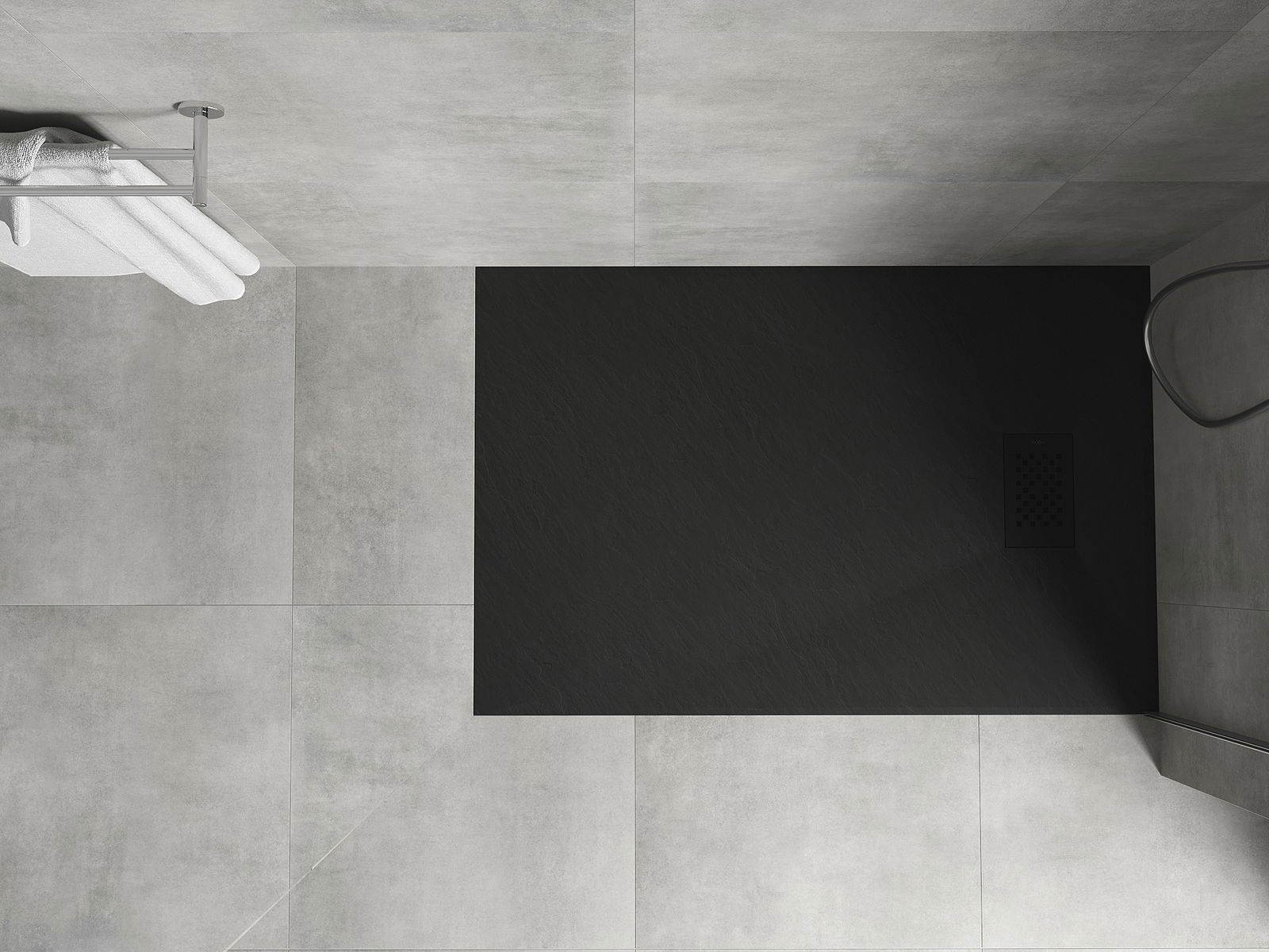 Ytan på duschbrickan påminner om sten i sin struktur. Den utgör en unik kombination av naturligt utseende med modern inredning. Den tillför karaktär, framhäver estetik och elegans i badrummets inredning och fascinerar med sin form.