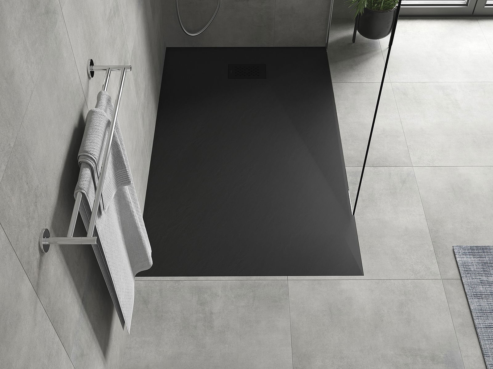 Ytan på duschbrickan påminner om sten i sin struktur. Den utgör en unik kombination av naturligt utseende med modern inredning. Den tillför karaktär, framhäver estetik och elegans i badrummets inredning och fascinerar med sin form.