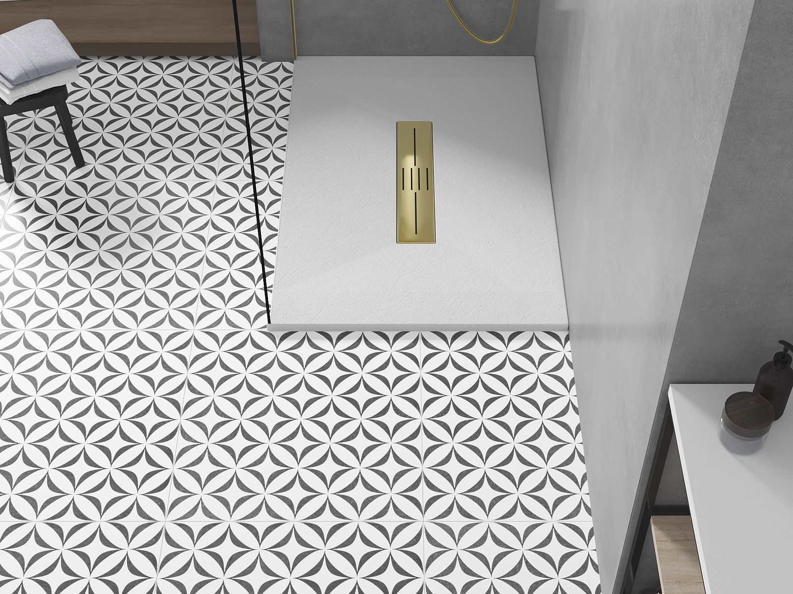Ytan på duschbrickan påminner om sten i sin struktur. Den utgör en unik kombination av naturligt utseende med modern inredning. Den tillför karaktär, framhäver estetik och elegans i badrummets inredning och fascinerar med sin form.