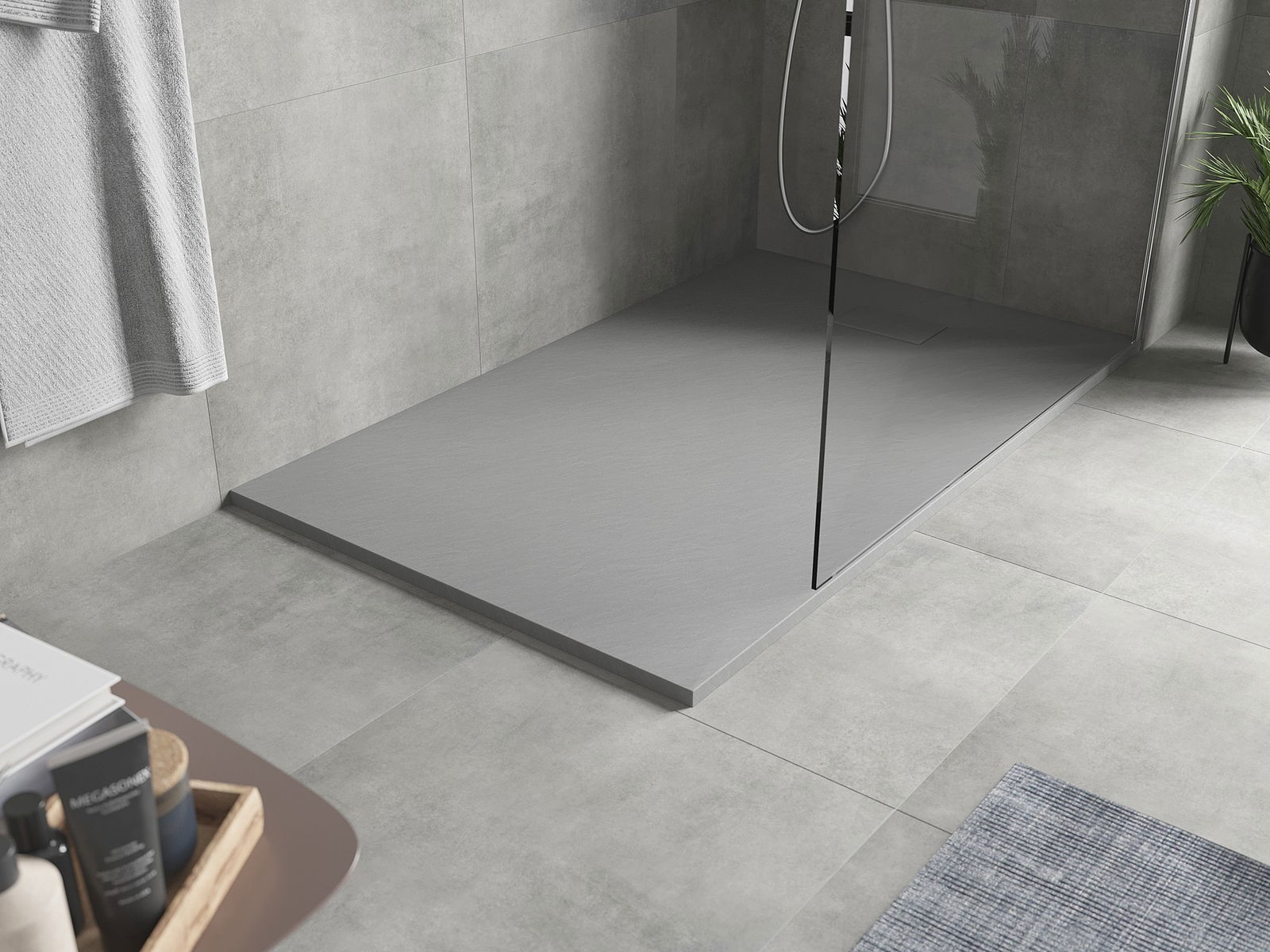 Ytan på duschbrickan påminner om sten i sin struktur. Den utgör en unik kombination av naturligt utseende med modern inredning. Den tillför karaktär, framhäver estetik och elegans i badrummets inredning och fascinerar med sin form.
