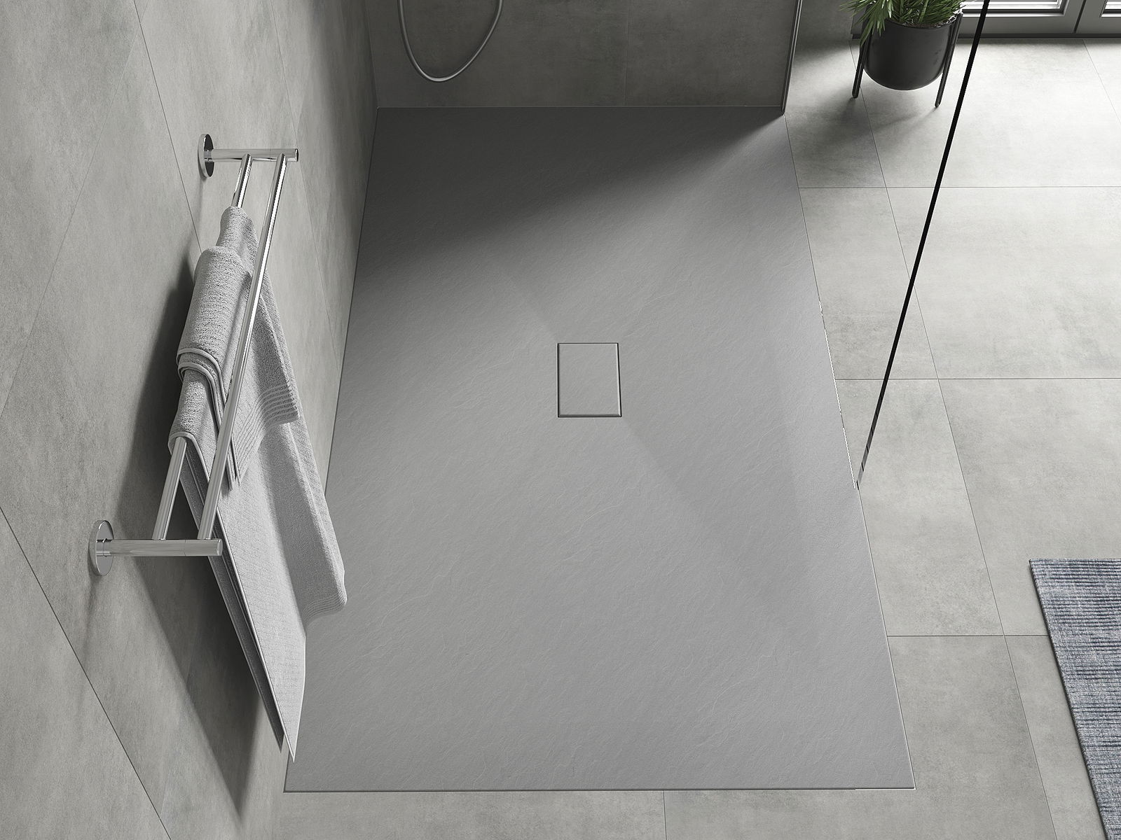 Ytan på duschbrickan påminner om sten i sin struktur. Den utgör en unik kombination av naturligt utseende med modern inredning. Den tillför karaktär, framhäver estetik och elegans i badrummets inredning och fascinerar med sin form.
