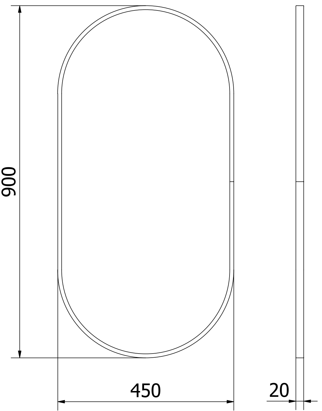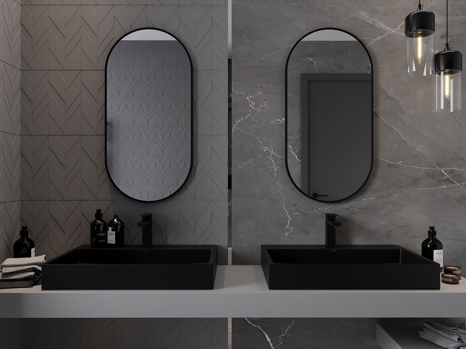 Mexen Loft Ovalt badrumsspegel 90 x 45 cm, svart ram - 9851-090-045-000-70