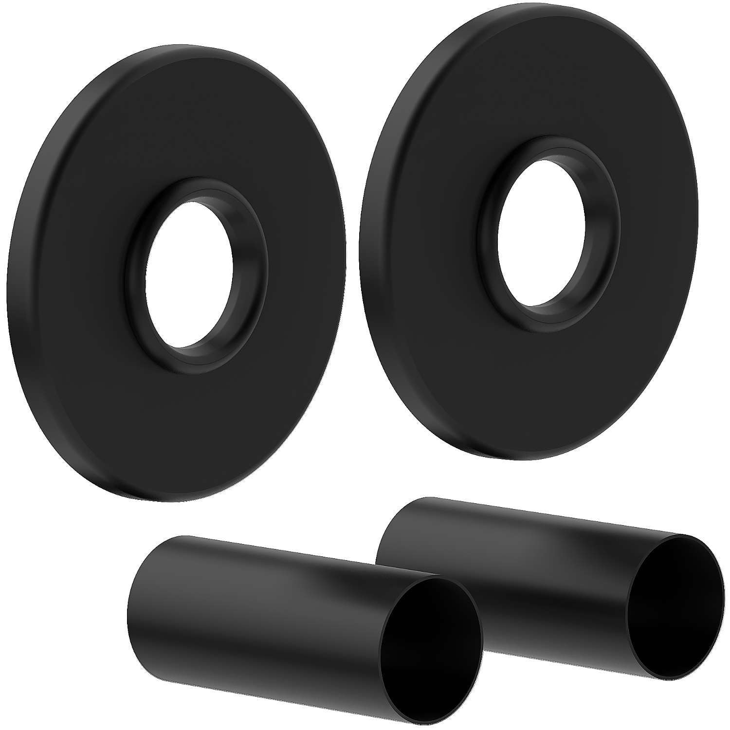 Täcksetet består av två enkla rosetter och hylsor avsedda för montering av termostatset och radiatorventiler